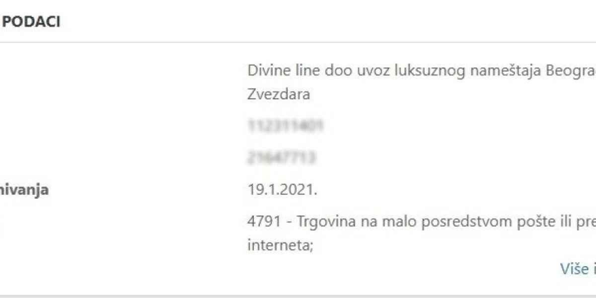 Posebno interesantno je i to što je prijavljeno da ovaj salon nameštaja ima samo jedno zaposleno lice. Kada je reč o platama, 2021. bruto plata (zajedno sa svim doprinosima i porezima koji se uplaćuju državi: penzijsko, zdravstveno, socijalno i invalidsko osiguranje, kao i porez na dohodak građana) jednog zaposlenog u firmi (pretpostavlja se nje same, budući da je zavedena kao direktor) iznosila svega 60.416 dinara, dok je 2022. bila nešto veća - 88.833 dinara, prenosi Pink.
