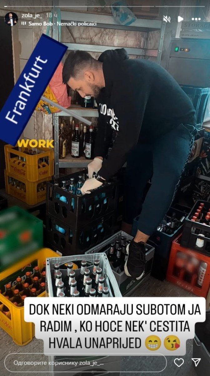 Čolić je sada na svom Instagramu u vidu storija podelio sliku i pokazao kako prenosi gajbe u magacinu lokala.