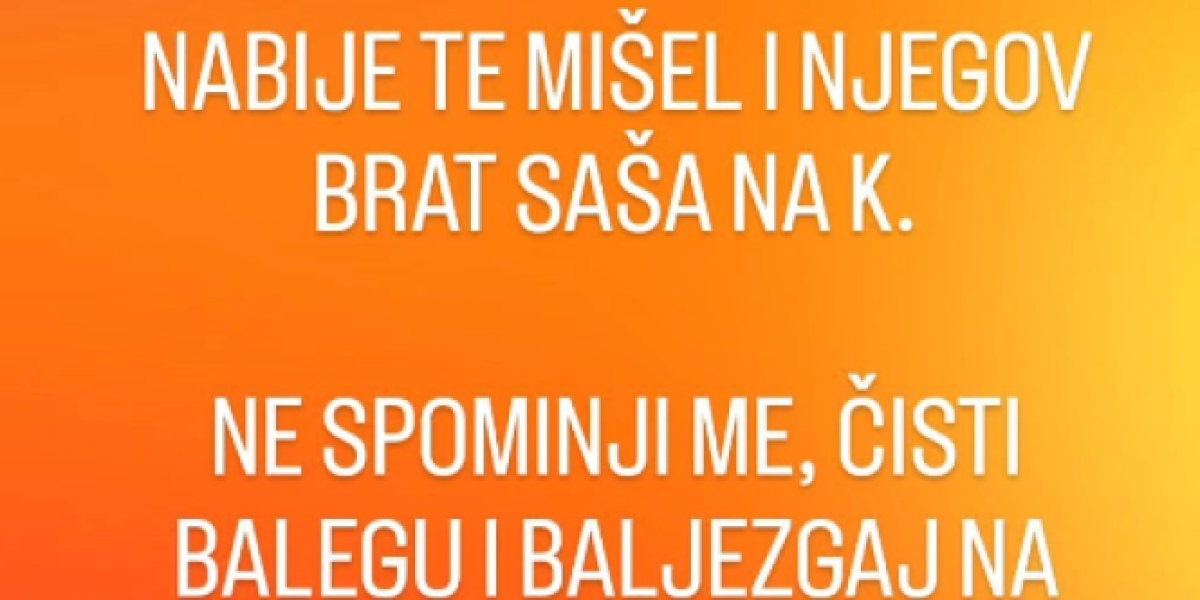 - Kristijane Goluboviću, drukaro, lažovu, kvazi kriminalcu i kromanjoncu. Ne spominji me, čisti balegu i baljezgaj na "Farmi". Srdačan pozdrav - napisao je pevač.