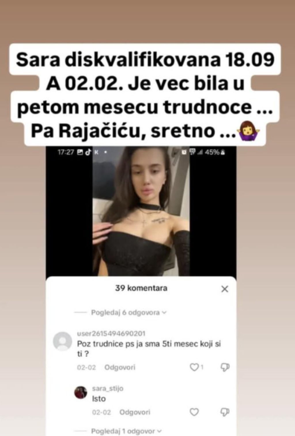 Podsetimo, Uroš i Sara su na samom početku rijalitija bili intimni, a kasnije su ušli i u žestoki verbalni okršaj nakon čega je diskvalifikovana.