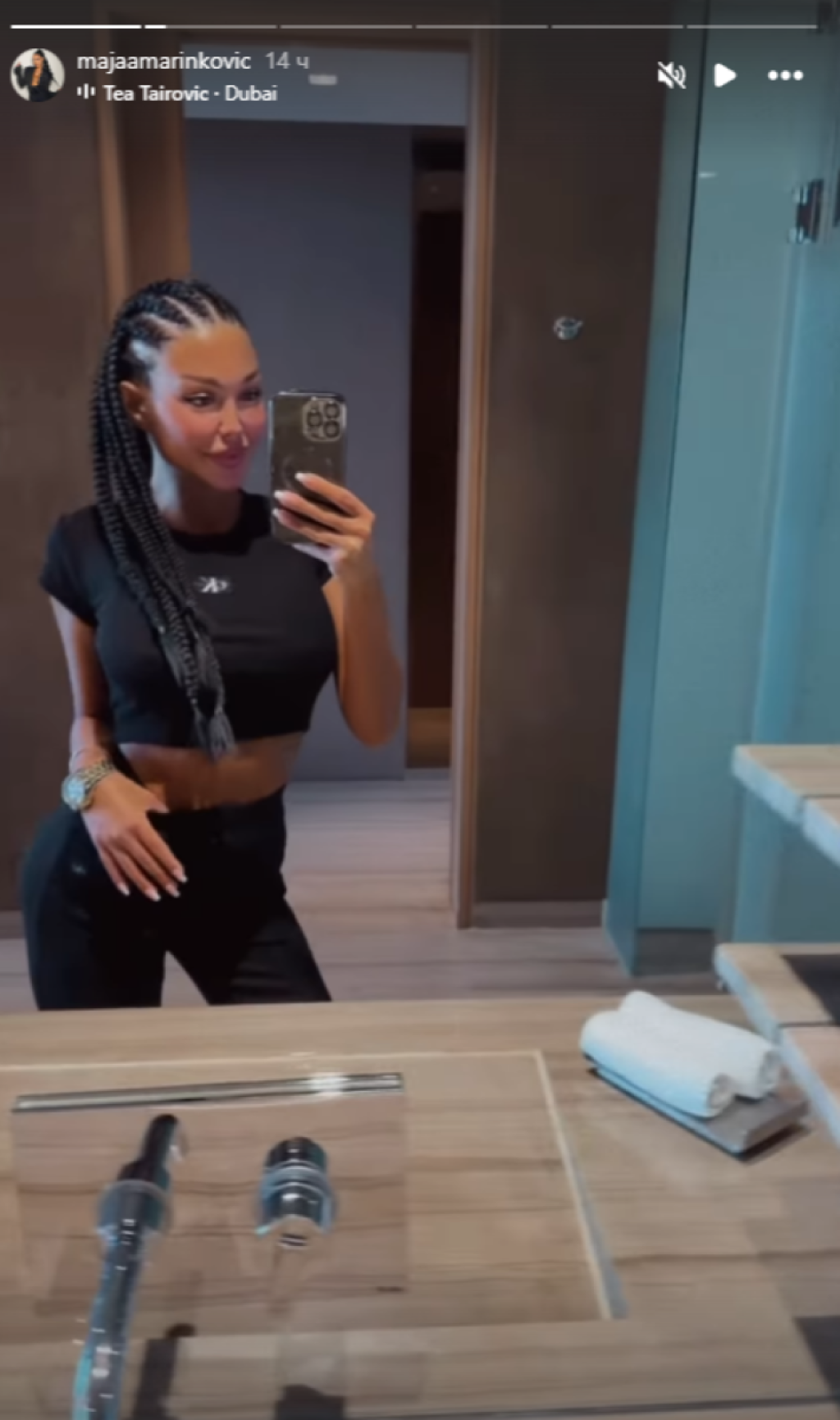 Nakon selfija usledio je snimak koji je, nema sumnje, pripadnike jačeg pola raspametio. Maja se uvijala u minijaturnom kupaćem, koji je jedva prekrio intimne delove tela. Niko nije mogao, a da ne primeti njene bujne grudi, ali i silikonsku zadnjicu.