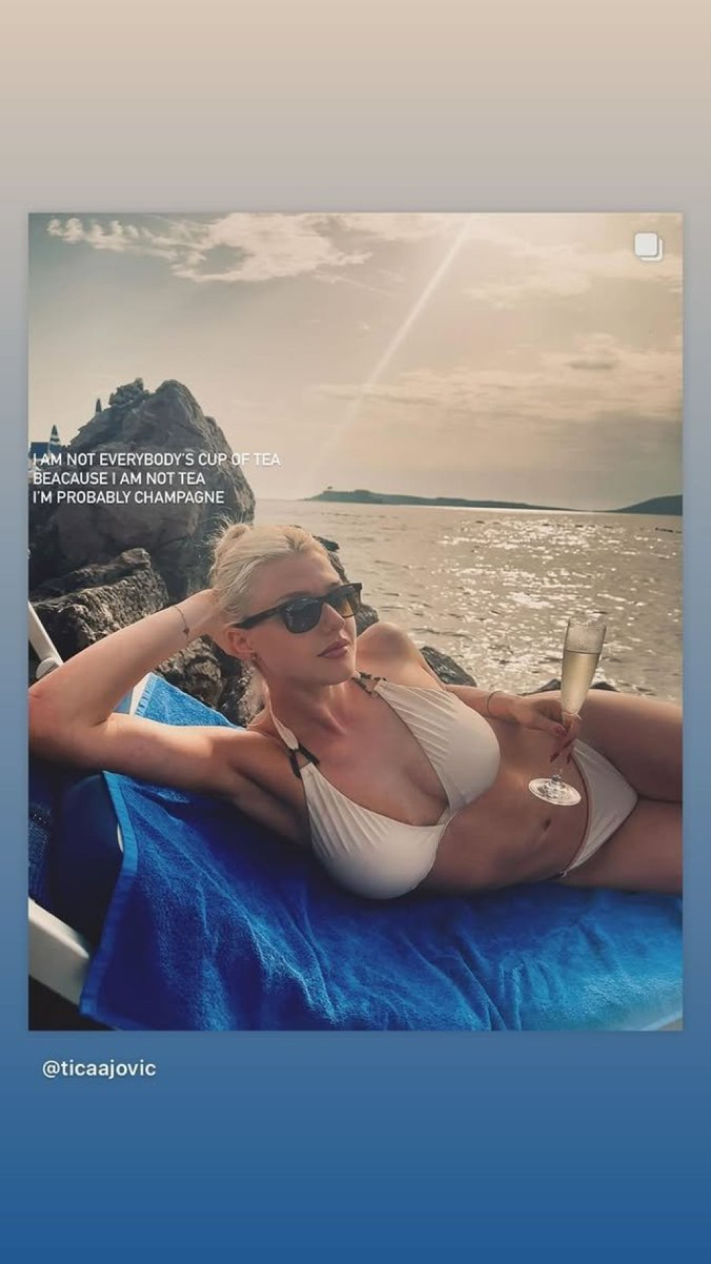 Takođe, Tića mnogo voli da putuje na egzotične destinacije, uglavnom u toplije krajeve - Kuba, Majorka, Ibica, Mikonos, Paros, Amalfi, Sveti Stefan, samo su neka od mesta u kojima je boravila.