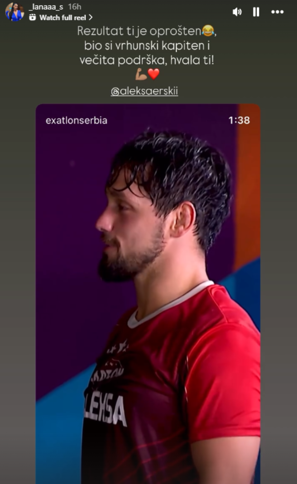Eliminisana takmičarka Crvenog tima Exatlona Lana Stanišić je, svog nekadašnjeg saborca, Aleksu Erskog, koji je sinoć napustio takmičenje, "prozvala" nakon ispadanja.