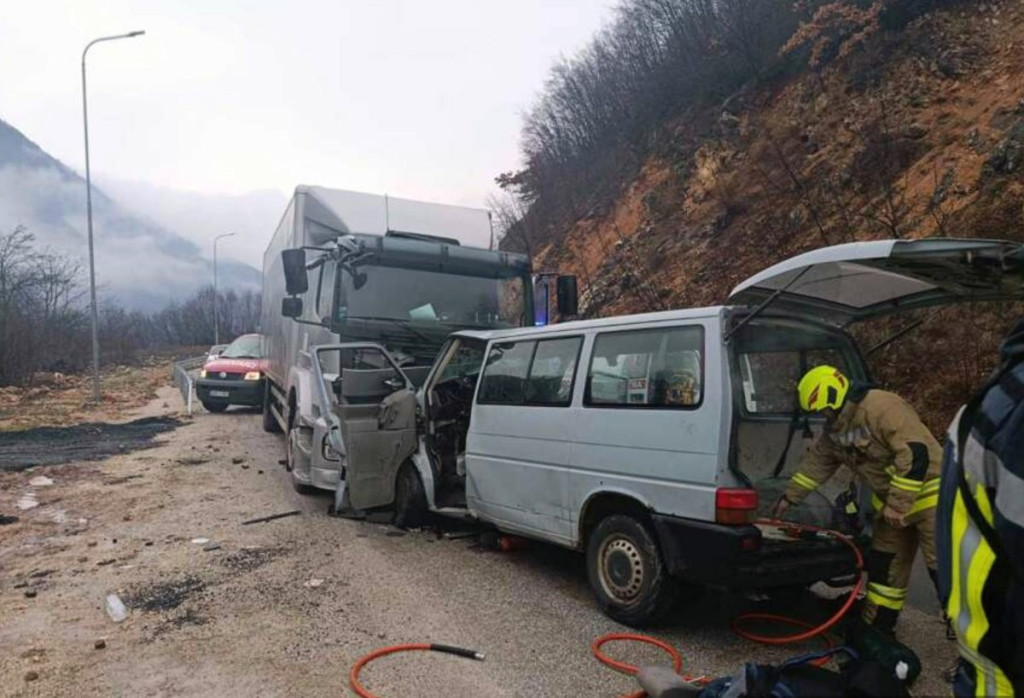 Kako smo već pisali, najmanje osmoro je povređeno u direktnom sudaru kamiona i kombija, a jedna osoba je nažalost podlegla povredama.