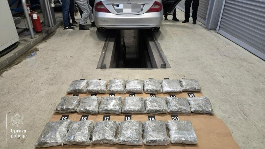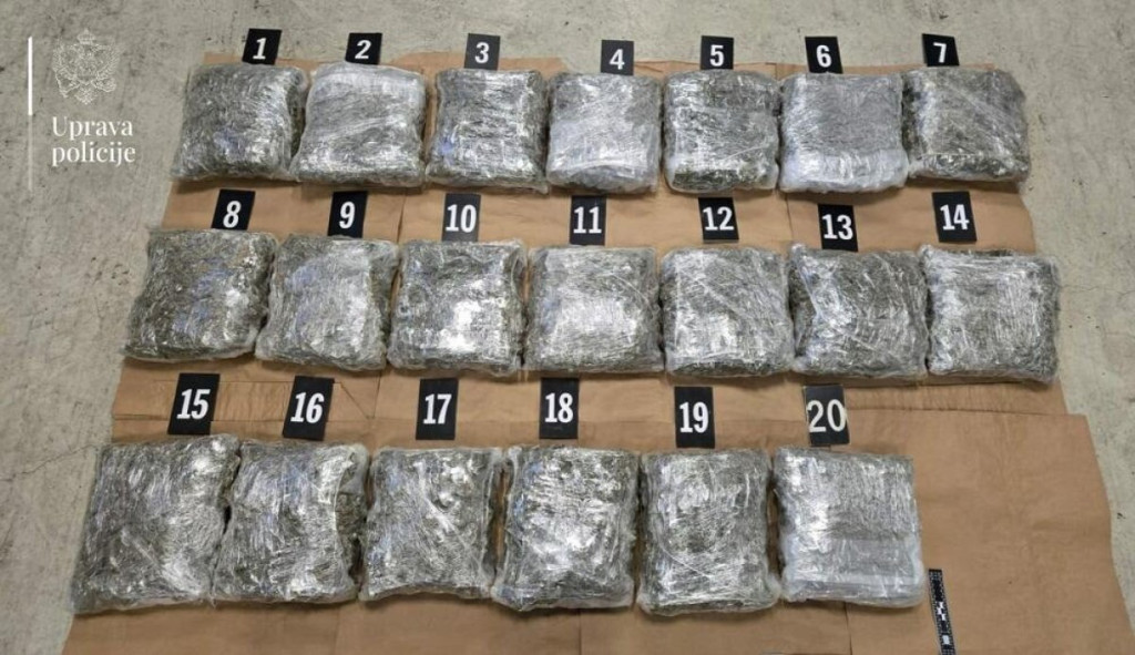 "Nakon zaustavljanja vozila marke Mercedes, podgoričkih registarskih oznaka, kojim je upravljao Ž. R. (29) iz Zete, isto je podvrgnuto detaljnom graničnom pregledu. Tom prilikom je u naslonu zadnjeg sedišta, odnosno između naslona sedišta i prtljažnika, otkriveno posebno izrađeno spremište - tzv. štek, u kojem se nalazilo 20 pvc pakovanja sa opojnom drogom marihuanom, ukupne mase oko 21 kilogram", saopšteno je iz Uprave policije.