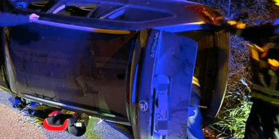 Kako su naveli vatrogasci, auto je bio okrenut na bok.