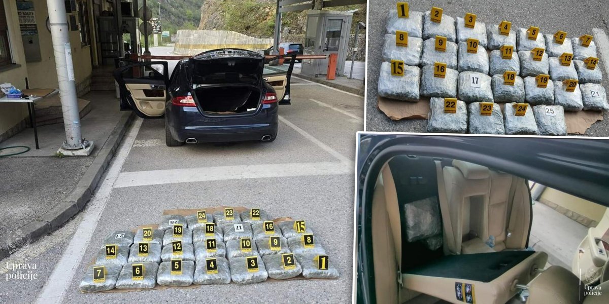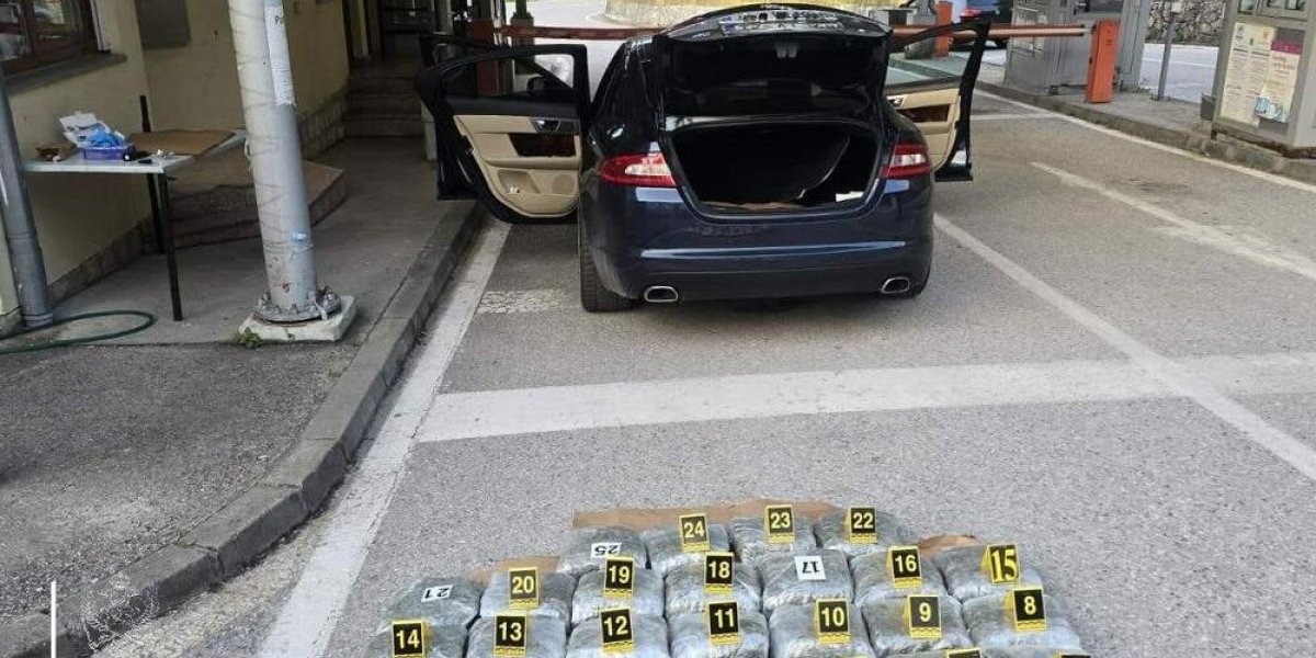 U saopštenju se dodaje da su policajci na graničnom prelazu Šćepan Polje, kontrolisali S.V. (25) iz Zete, koji je upravljao vozilom marke "jaguar", crnogorskih registarskih oznaka, u vlasništvu druge osobe, i da je kod njega u vozilu pronađena veća količina opojnih droga, odnosno marihuane.