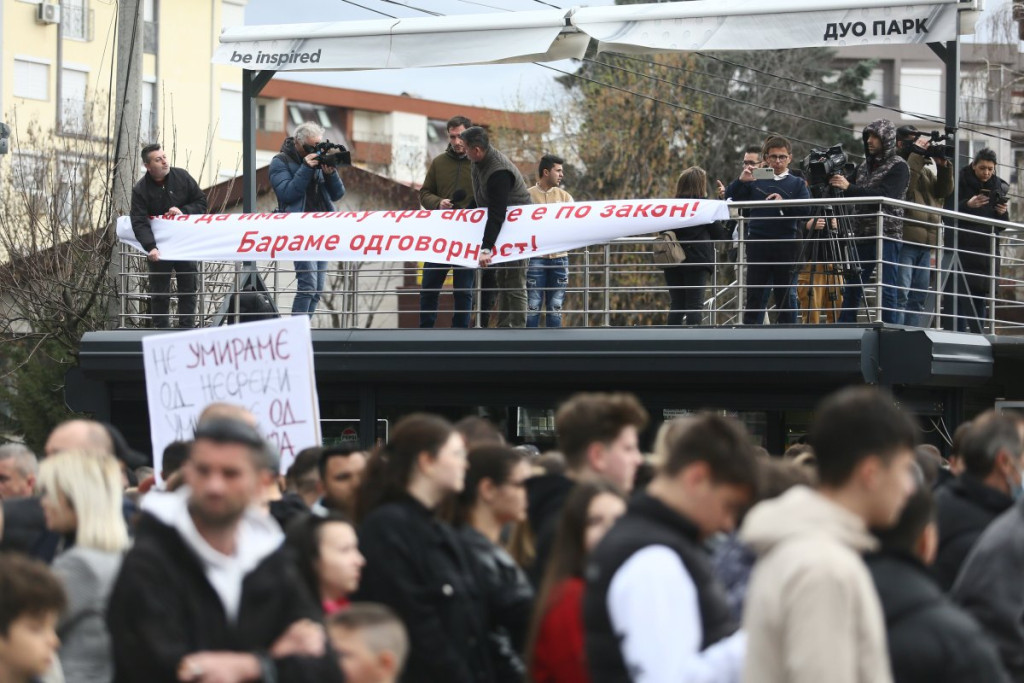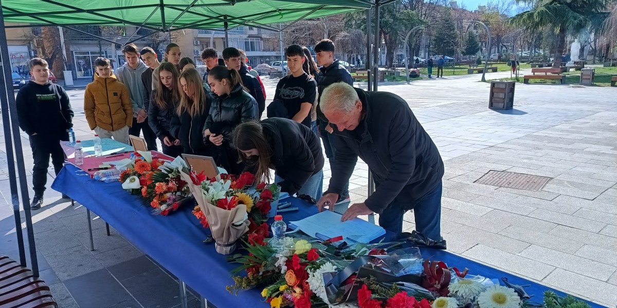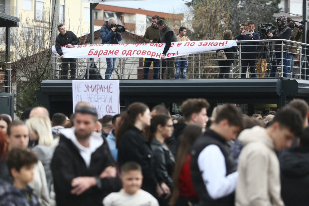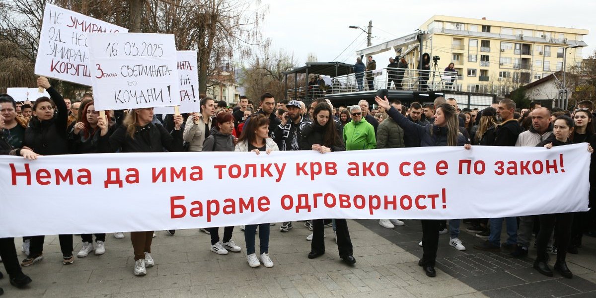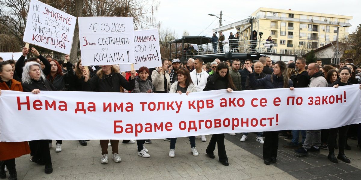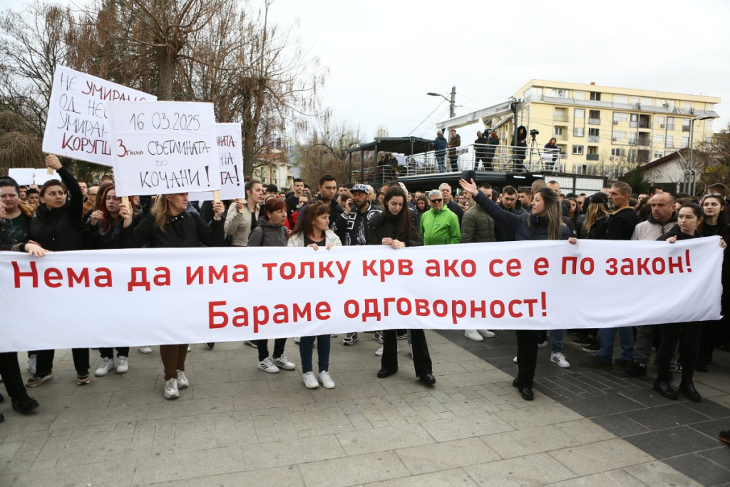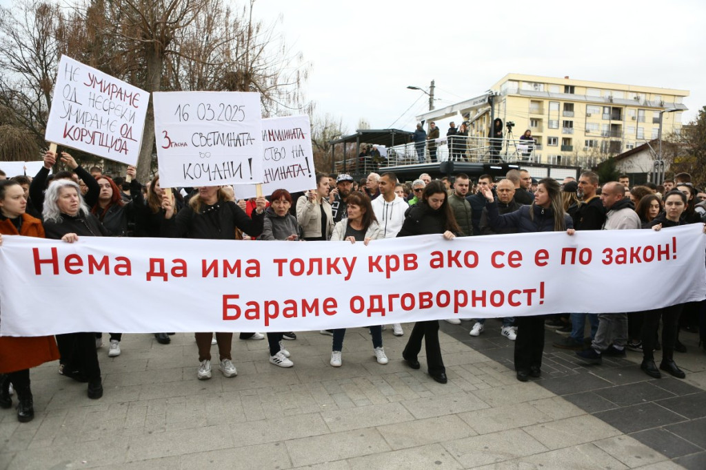 Građani Kočana odaju počast poginulima, pale sveće i upisuju se u Knjigu žalosti. Tokom popodneva održan je i protest na kome je zatražena odgovornost za tragediju.