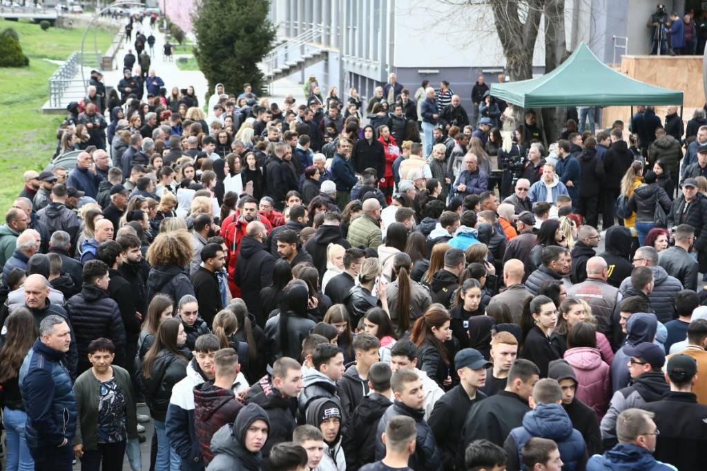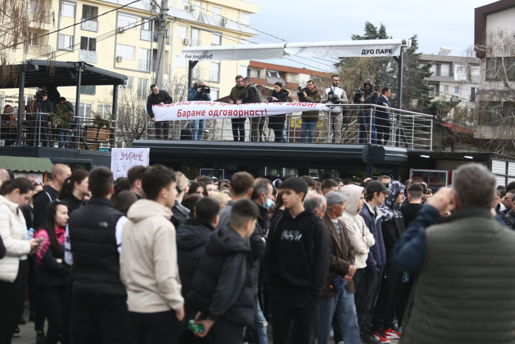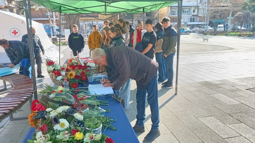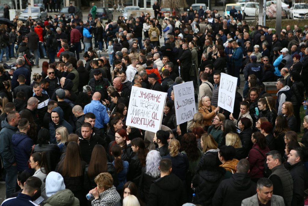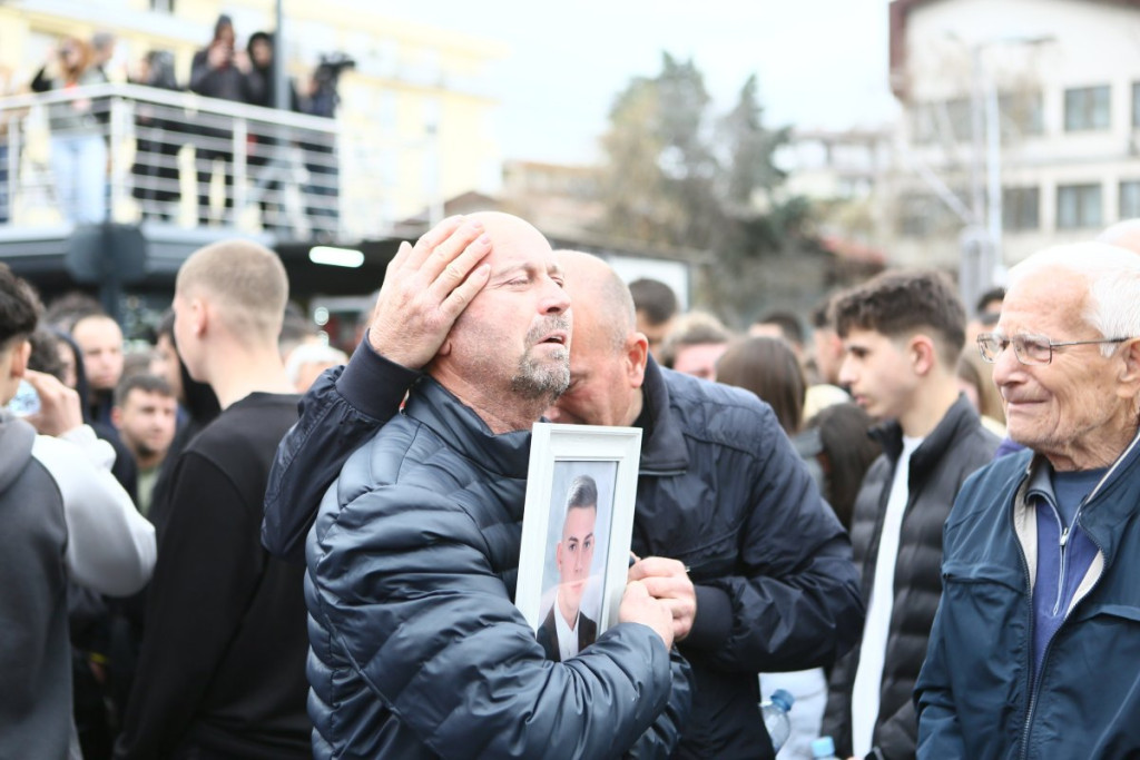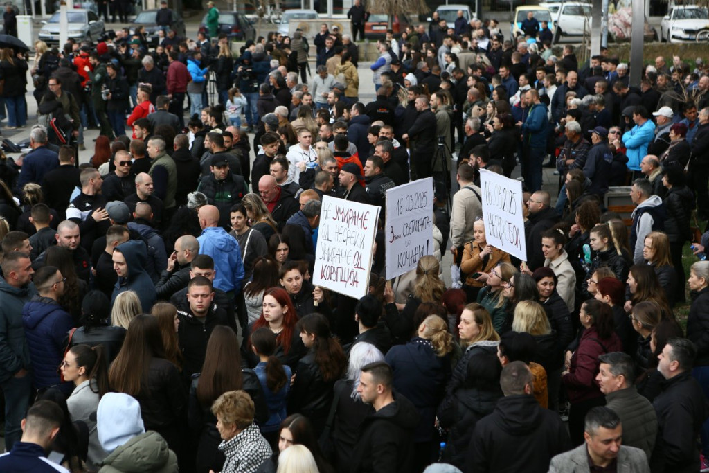 Građani Kočana odaju počast poginulima, pale sveće i upisuju se u Knjigu žalosti. Tokom popodneva održan je i protest na kome je zatražena odgovornost za tragediju.