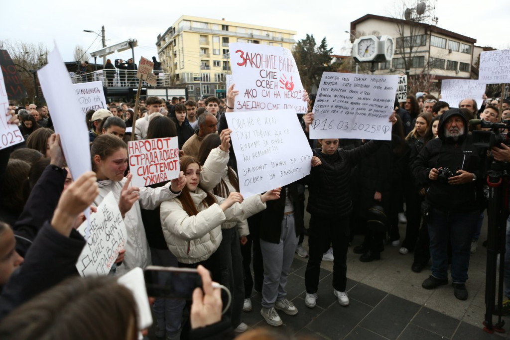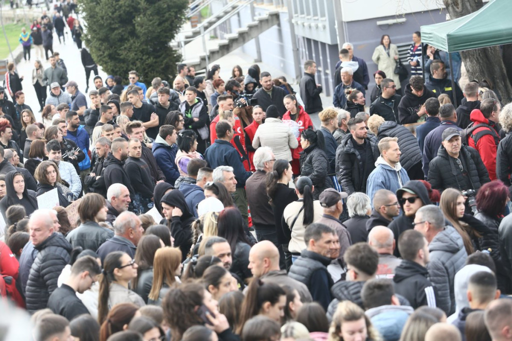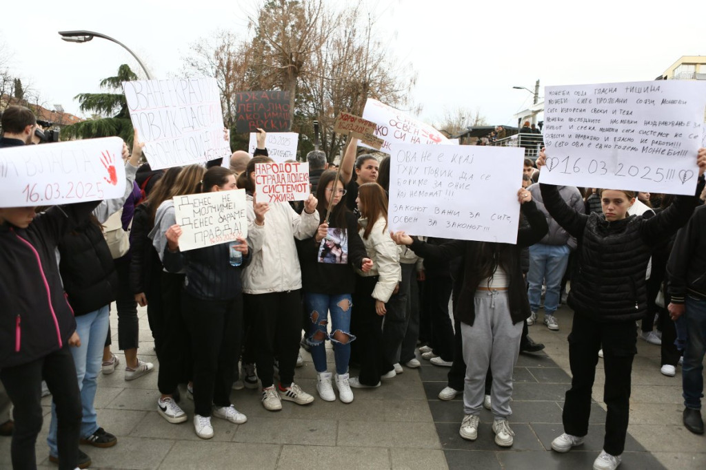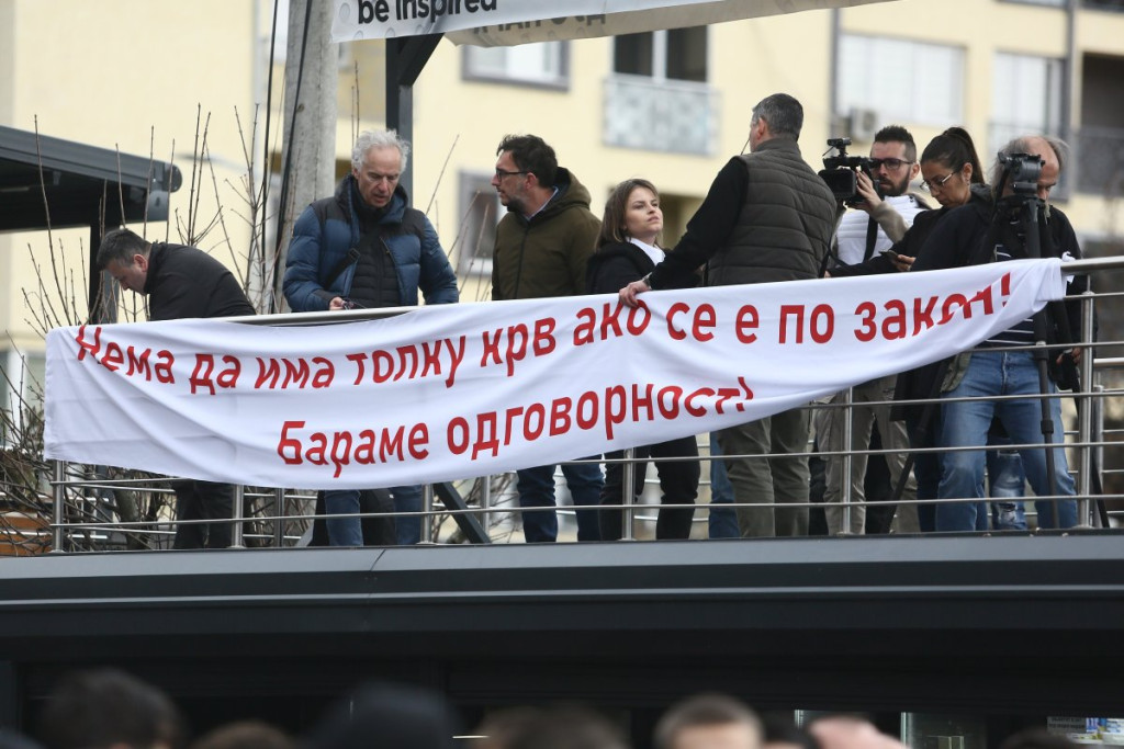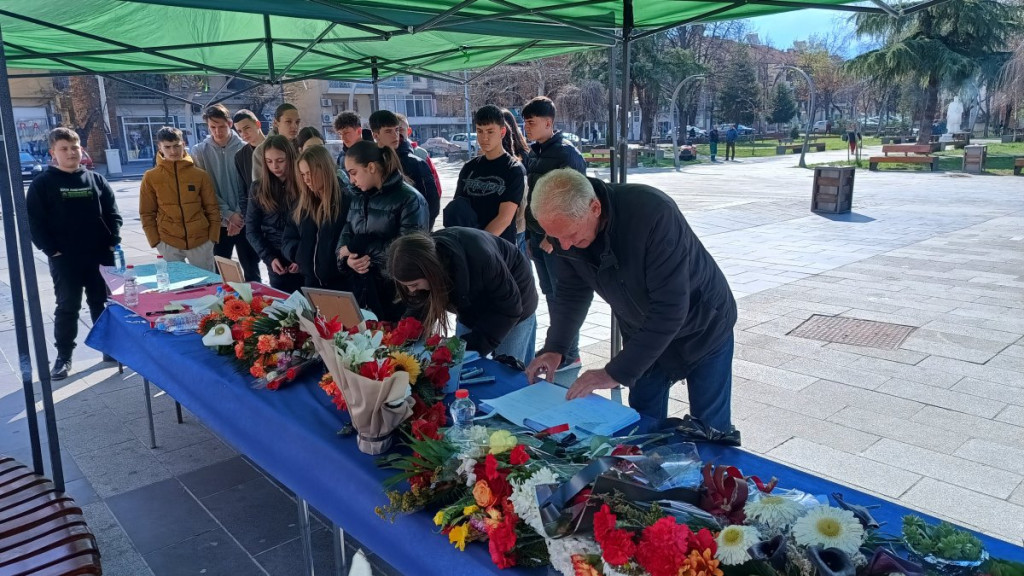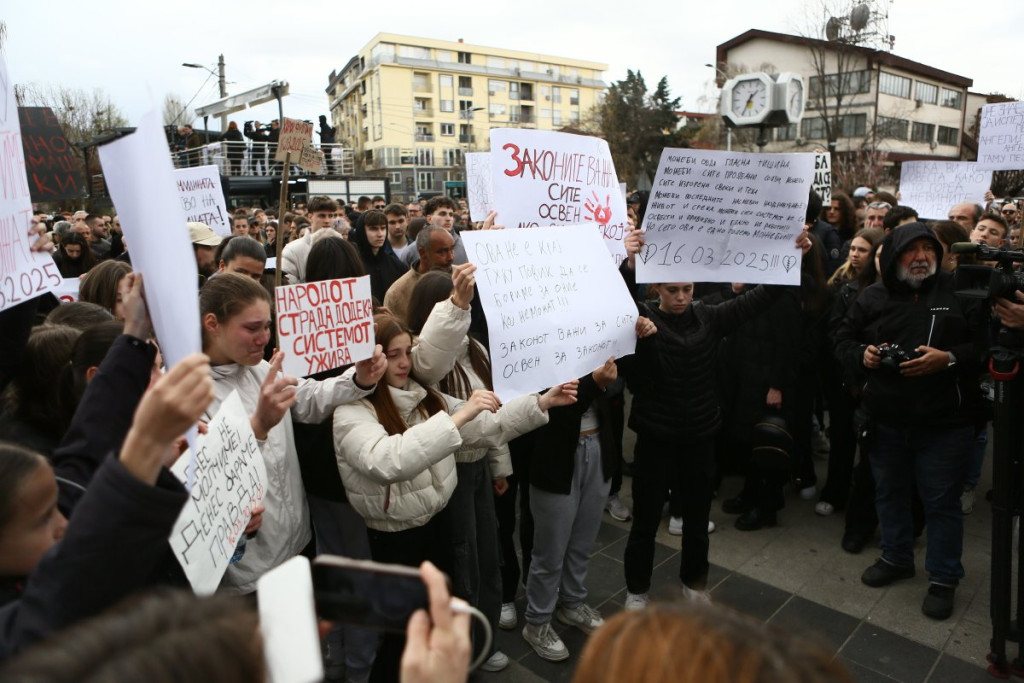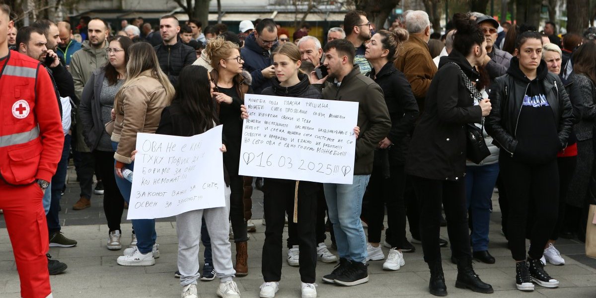 Građani Kočana odaju počast poginulima, pale sveće i upisuju se u Knjigu žalosti. Tokom popodneva održan je i protest na kome je zatražena odgovornost za tragediju.