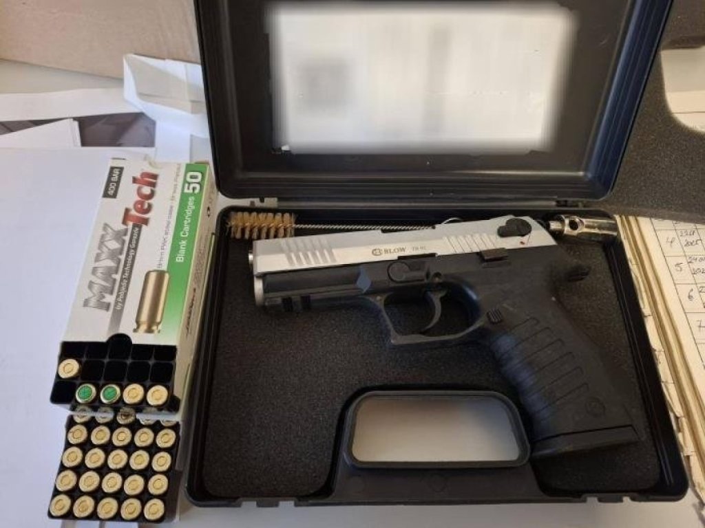 Navode da su policijski službenici, u odvojenim aktivnostima, pretresom na drugoj lokaciji, pronašli i oduzeli startni pištolj marke “Blow”, cal. 9 mm.