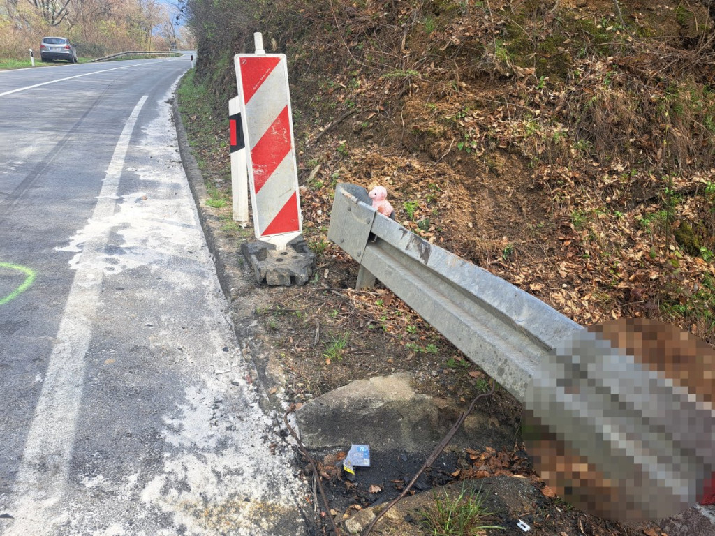 Mesto nesreće je raščišćeno, ali su ostali tragovi. Krv se sliva niz zaštitnu ogradu, a slika koja para dušu jeste igračka koja je ispala iz vozila i ostala na mestu tragedije.
