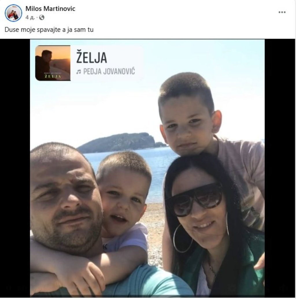 Prethodno je objavio status u kome je napisao "Duše moje spavajte a ja sam tu", i uz komentar "Doći će sve na naplatu", uz pesmu "Želja" od Peđe Jovanovića.