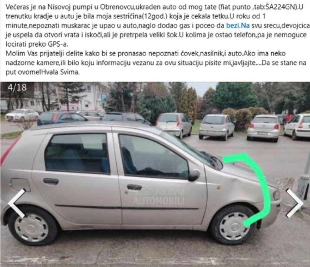 - Sve se odigralo u nekoliko sekundi. Moja sestra je ušla na pumpu, a taj čovek je ušao u automobil i krenuo da vozi. Ćerka je počela da vrišti, a on joj je samo rekao: "Ućuti"- kaže majka devojčice (12) koja je bila u automobilu "fijat" kada je nepoznati muškarac ušao u vozilo i ukrao ga na jednoj benzinskoj stanici u centru Obrenovca.