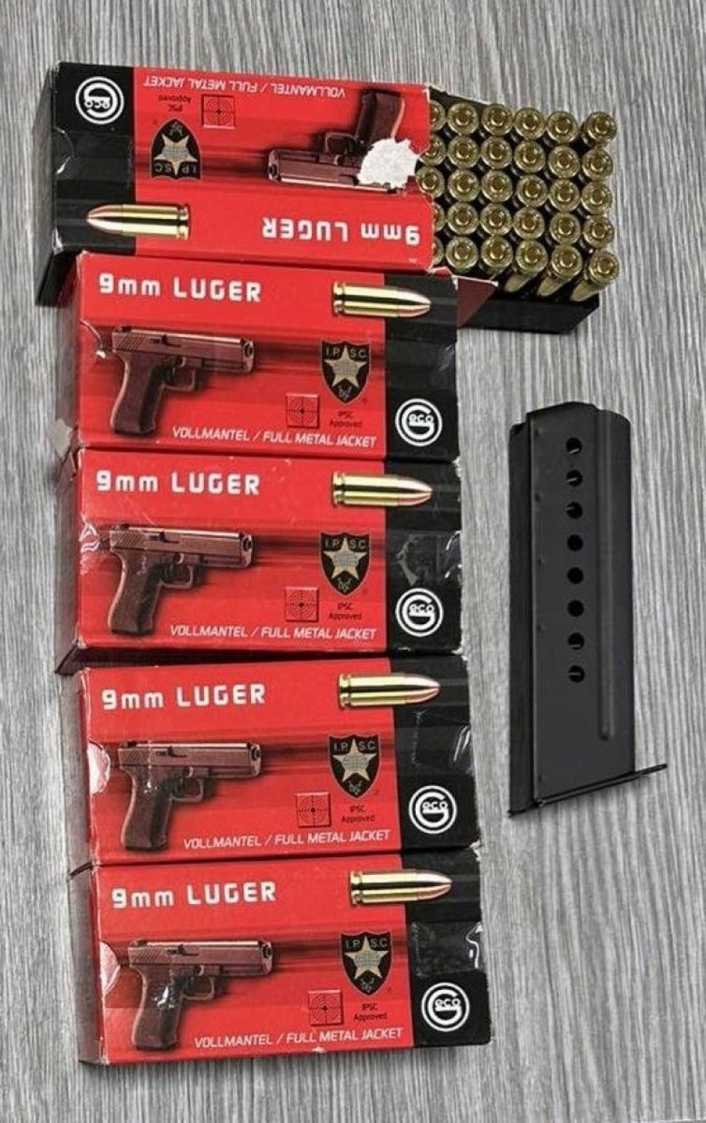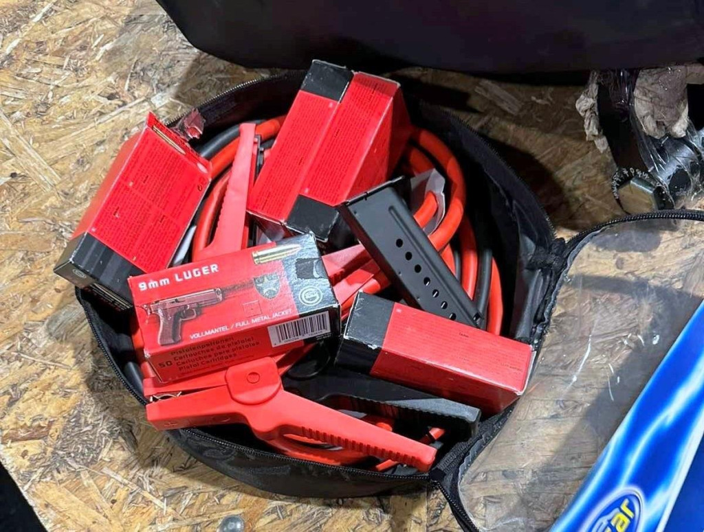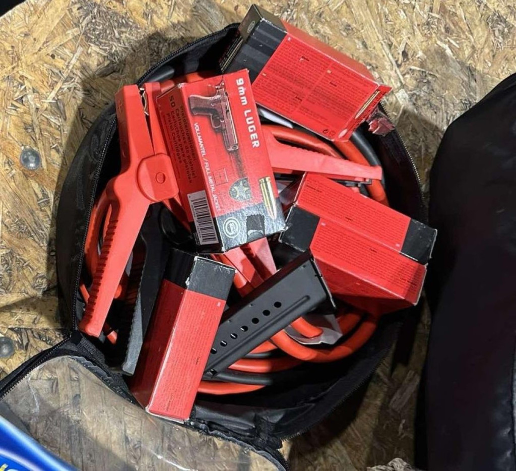U torbi sa kablovima za startovanje automobila, koja je pronađena u prtljažniku je tada otkriveno i pet kutija sa ukupno 250 metaka ''Luger 9mm'', sa pripadajućim pištoljskim okvirom.
