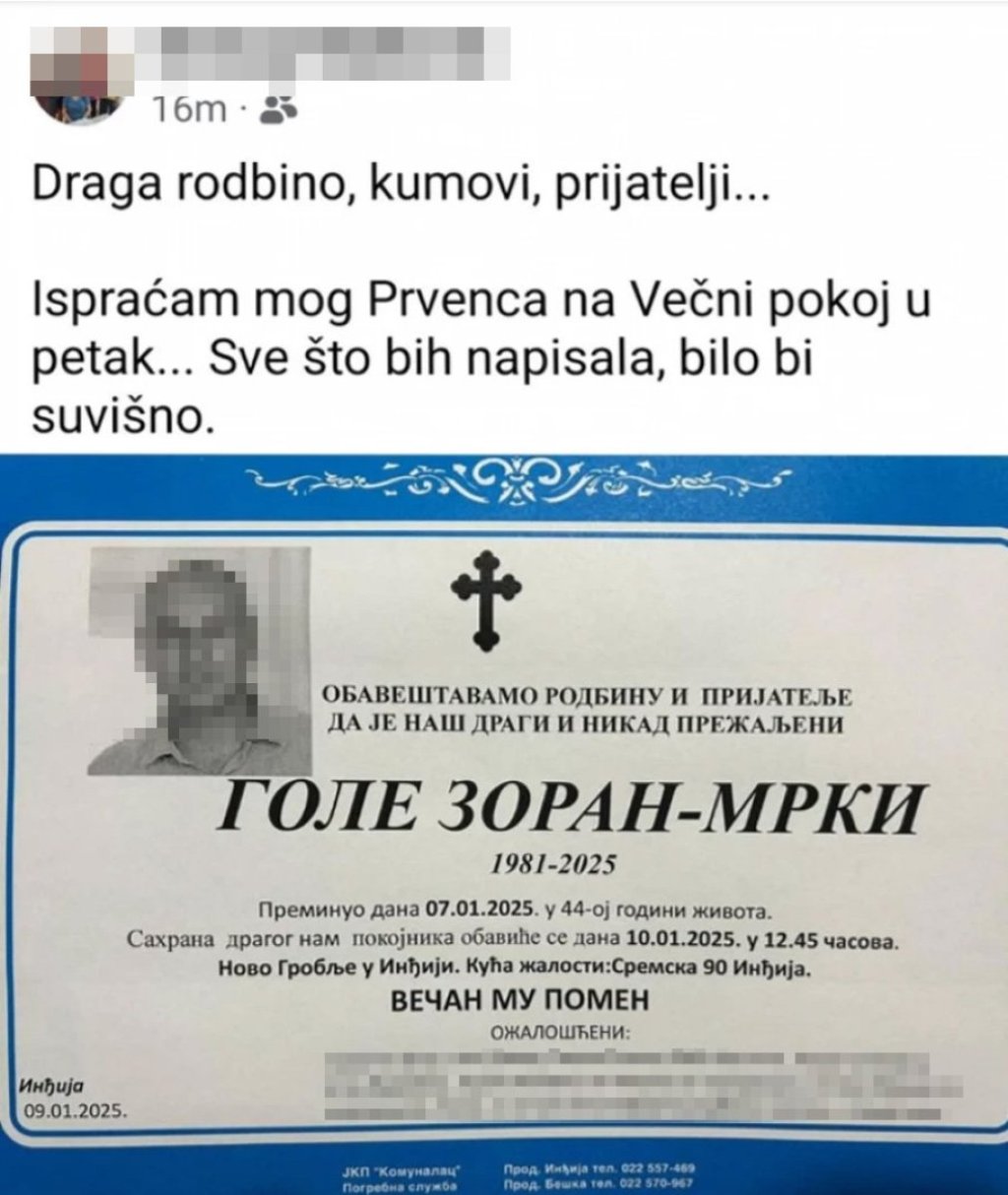 Kako je ranije saopšteno, 6. januara, oko 23 sata, u Inđiji, ispred porodične kuće, četvorica muškaraca su oštrim predmetom naneli ubodne rane opasne po život Zoranu Gole (44) od kojih je on preminuo.