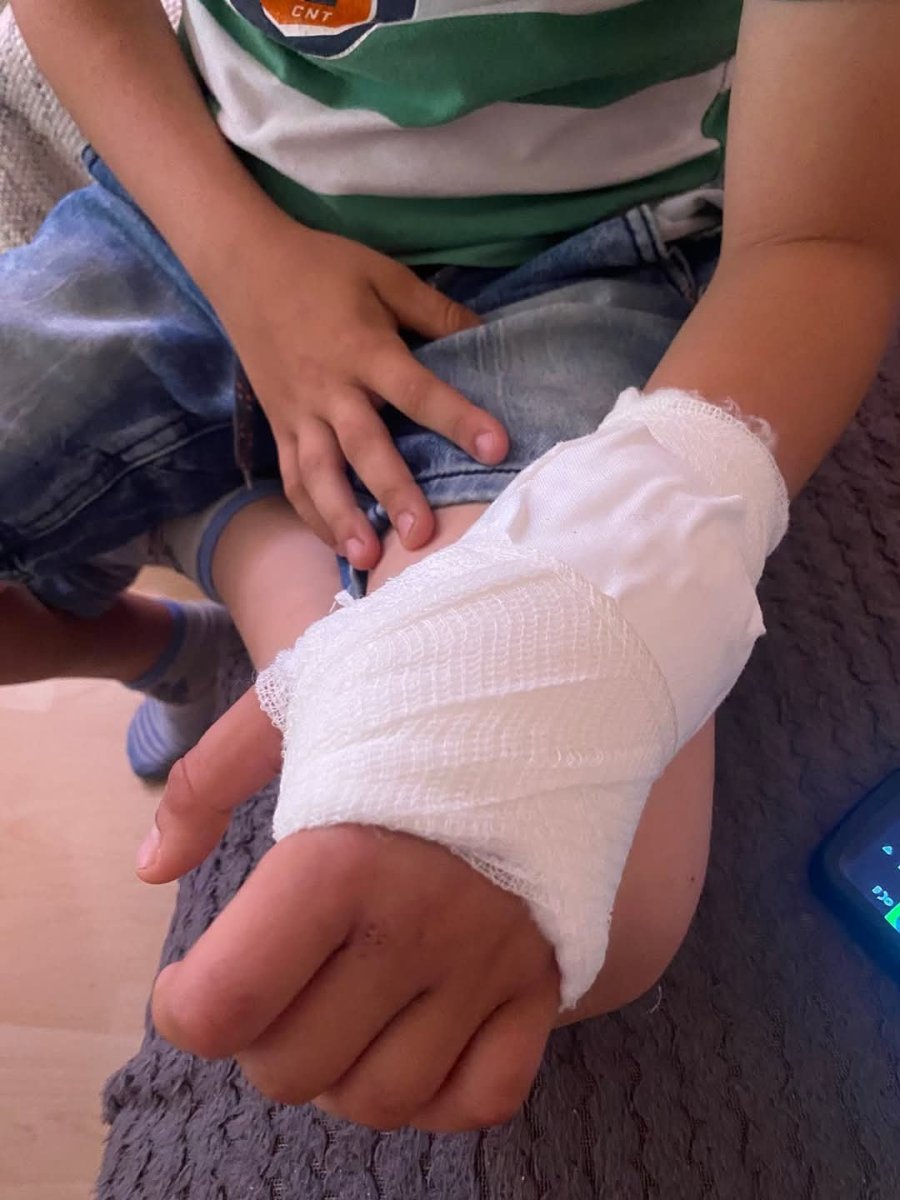 Međutim, prema rečima majke dečaka, njemu je povređen zglob zbog čega trpi jake bolove.