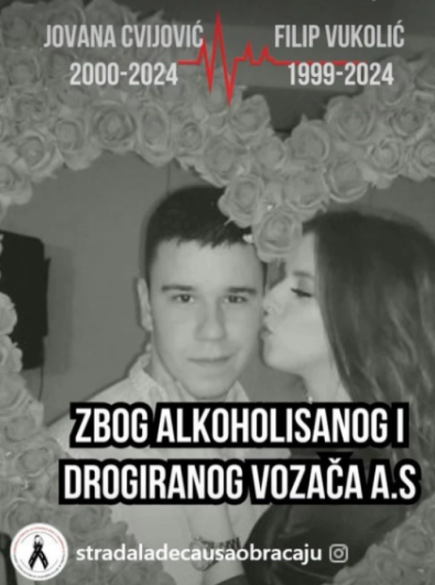 Osumnjičenom za izazivanje kobne saobraćajne nesreće, A.S. (30), vozaču BMW koji je pod dejstvom alkohola i usled neprilagođene brzine udario u automobil ''fijat punto ''u kom su bili verenici Jovana Cvijović i Filip Vukolić, održano je suđenje u četvrtak u Višem sudu u Požarevcu.