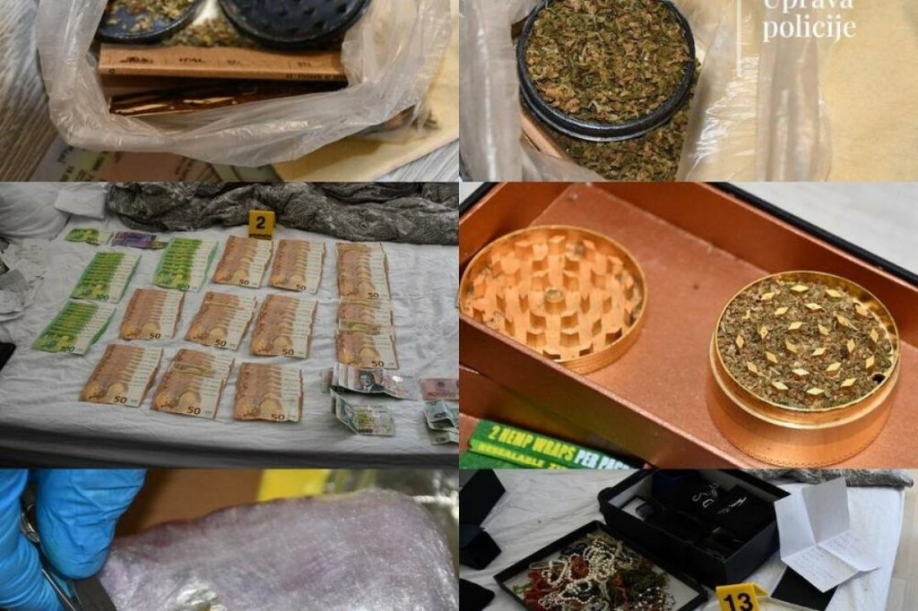 Kako su kazali, pretresima je policija pronašla znatnu količinu novca, nakit velike vrednosti, oko 200 grama materije za koju se sumnja da je opojna droga, kao i druge predmete koji su -