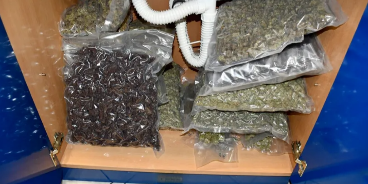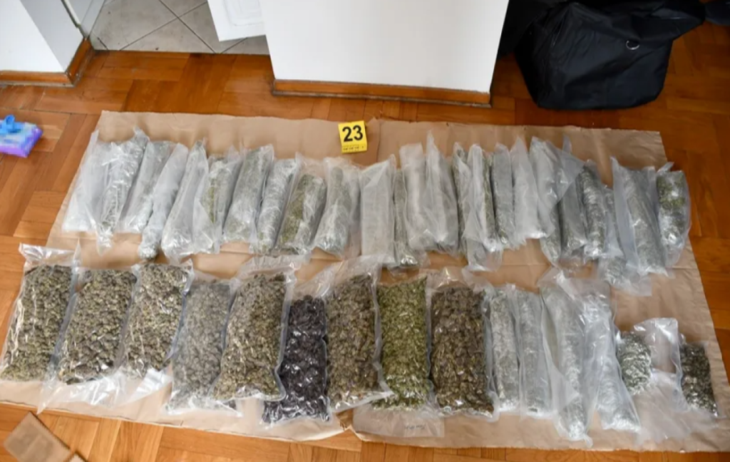 Policijski službenici su pretresom stana u kojem su neprijavljeno boravili S. S. i D. P. pronašli i zaplenili oko 25 kilograma marihuane, oko 11 kilograma tableta MDMA, oko pet litara amfetaminskog ulja, oko 900 grama kokaina, oko 4,5 kilograma amfetamina, oko 500 grama hašiša, oko 100 grama psihoaktivnih pečuraka, kao i 252 vejp cigarete u kojima se nalazi kanabisovo ulje, 25 elektronskih cigareta sa kanabisovim uljem, dve mašine za vakuumiranje i pet elektronskih vagica za precizno merenje.
