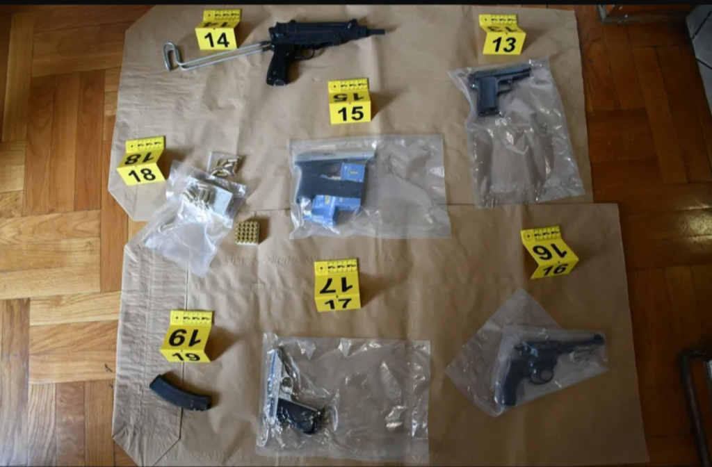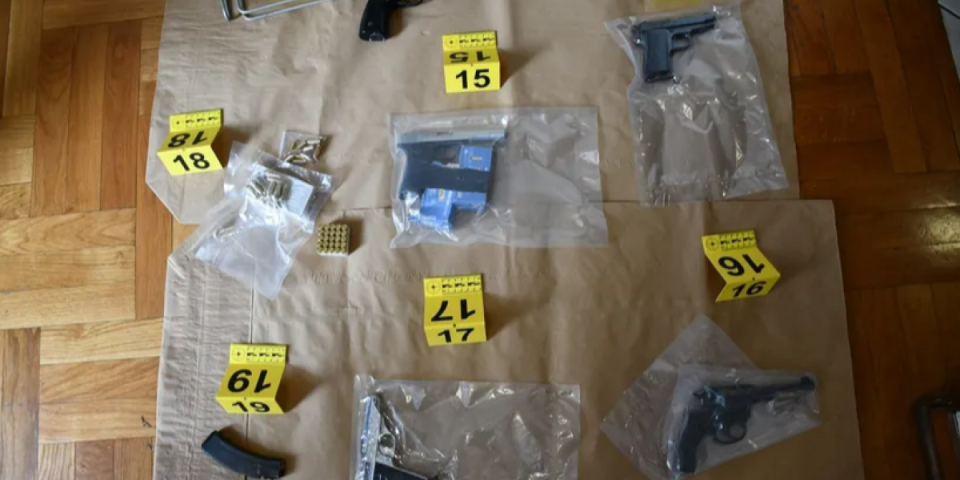 Takođe, pronađena su i tri pištolja sa pripadajućom municijom, revolver i automatski pištolj sa pripadajućom municijom.