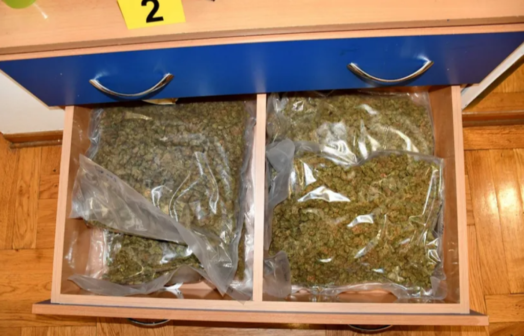 Prilikom pretresa drugog stana u kojem S. S. neprijavljeno boravi zaplenjeno je oko 40 grama marihuane, oko 30 grama hašiša, oko 10 grama kokaina i veća suma novca.