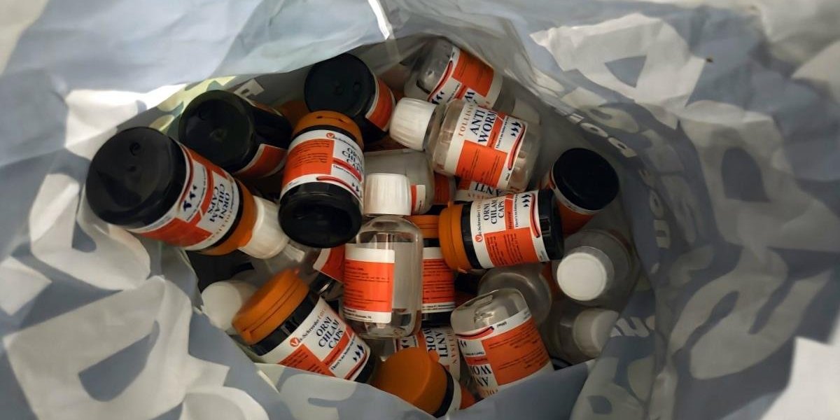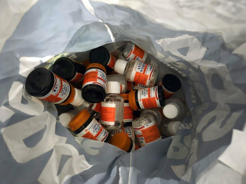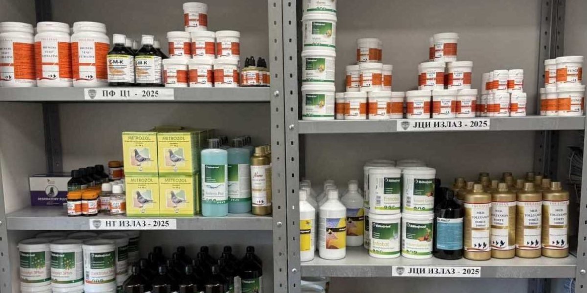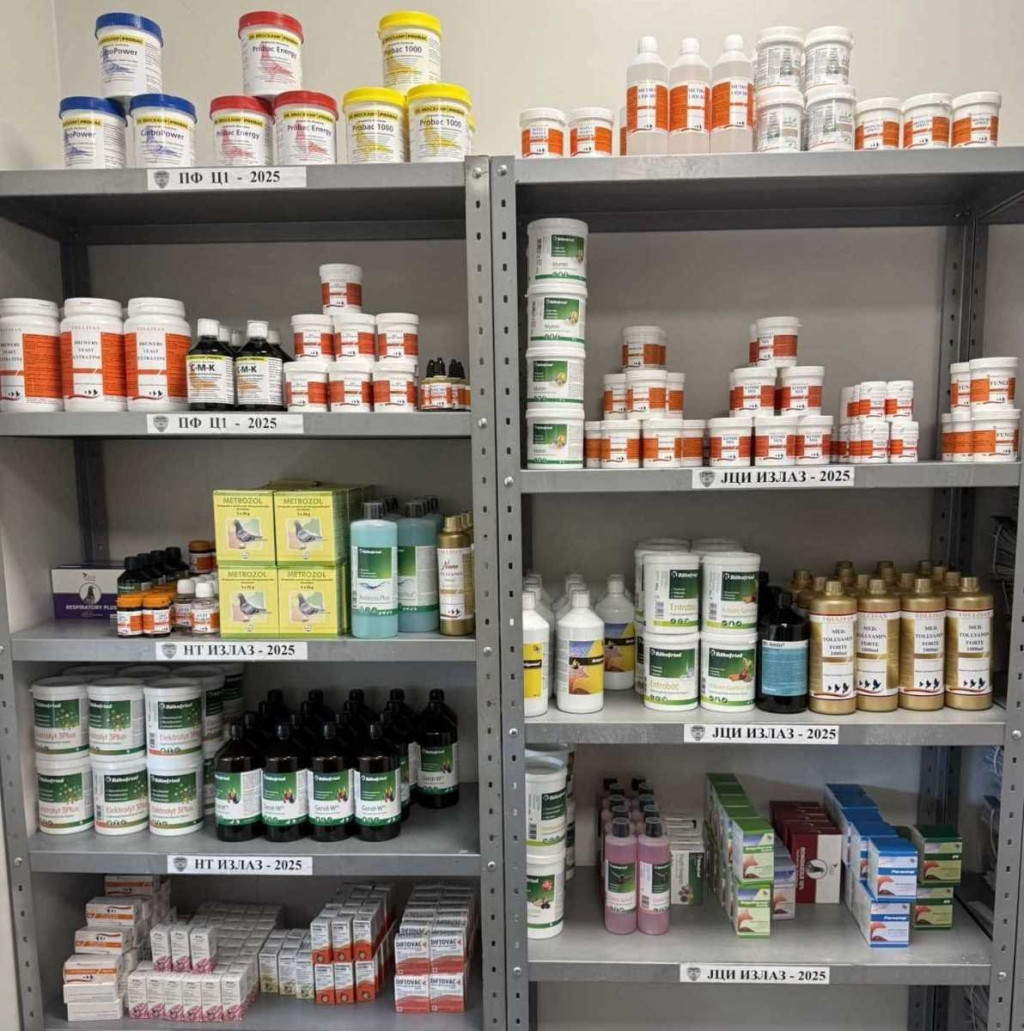 Količina lekova i suplemenata za golubove bila je tolika da njome može da se popuni nekoliko polica.