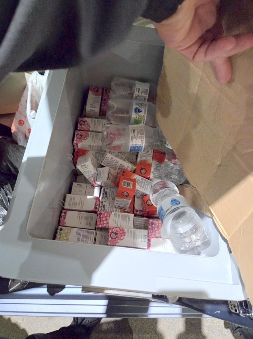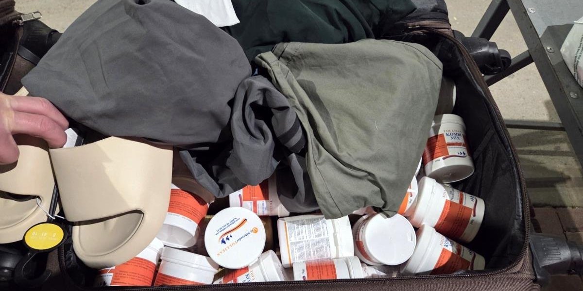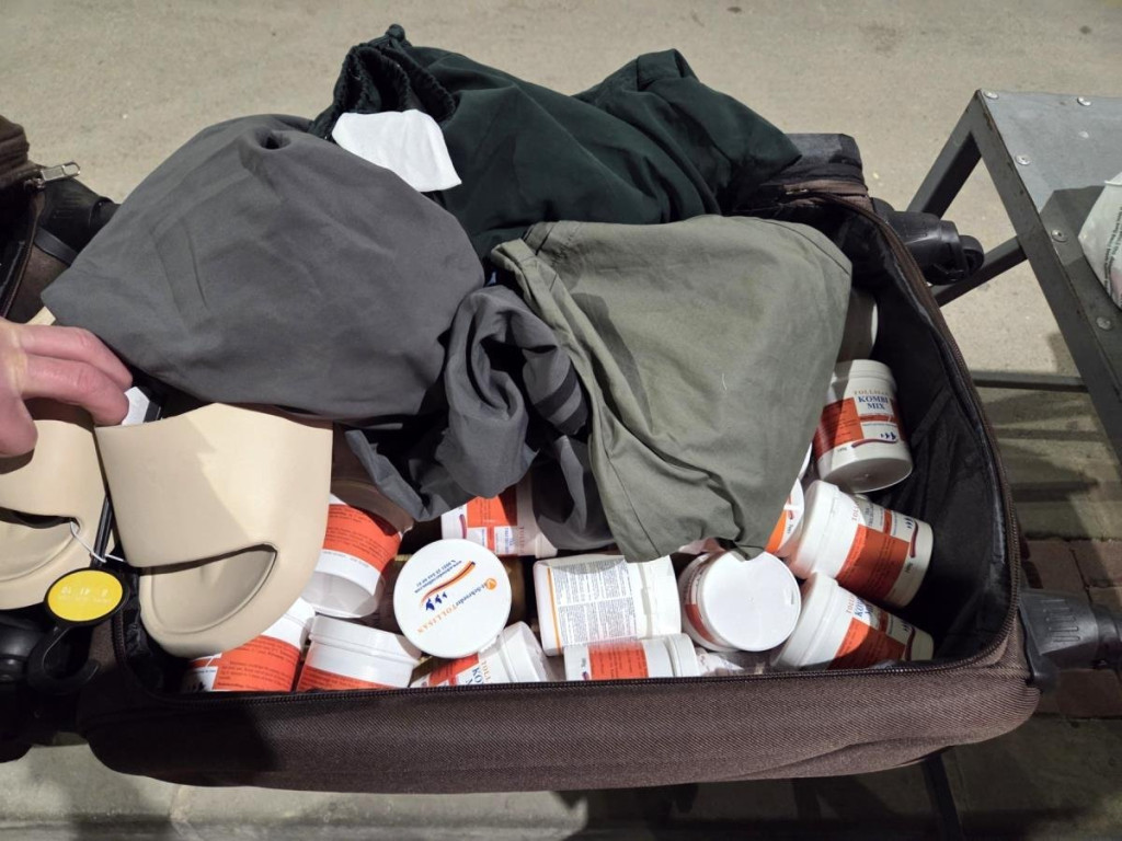 Kako se vidi na fotografijama, osoba koja je pokušala ilegalno da unese lekove za golubove u Srbiju sakrila ih je po torbama, najverovatnije u nadi da neće biti izdvojena za detaljni pregled vozila.