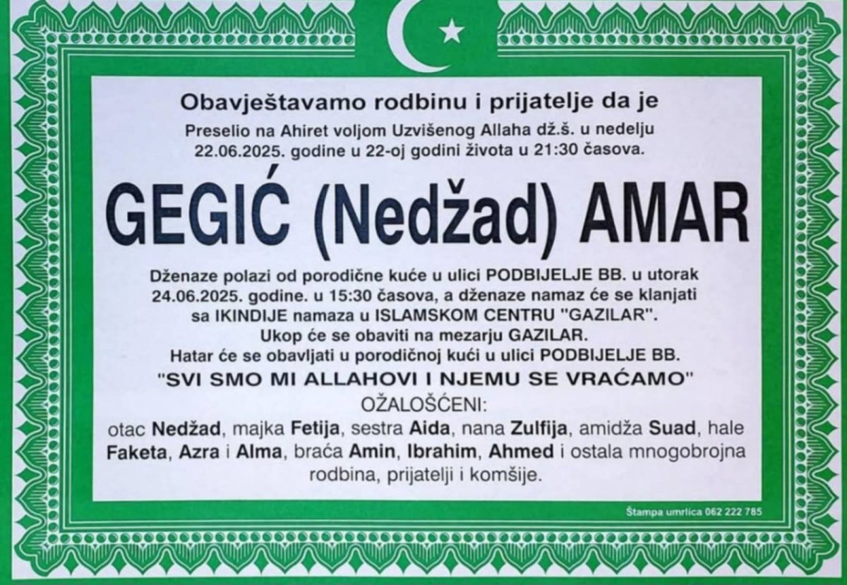 Ova vest izazvala je tugu i nevericu u Novom Pazaru, gde je Amar bio poznat kao vedar i miran mladić.