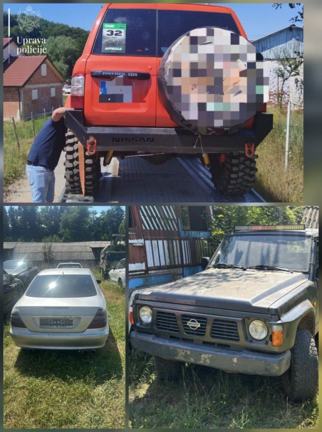 "Beranska policija je pretresom porodičnih kuća i pomoćnih objekata koje su locirane u opštini Petnjica, od lica J.A. (29) oduzela, radi odgovarajućih provera, putničko motorno vozilo marke Mercedes, bez registarskih oznaka i prateće dokumentacije, dok je od lica E.R. (32) oduzeto vozilo marke Nissan, francuskih registarskih oznaka, za koje se sumnja da je na istom manipulisano brojem šasije", navode u policiji.