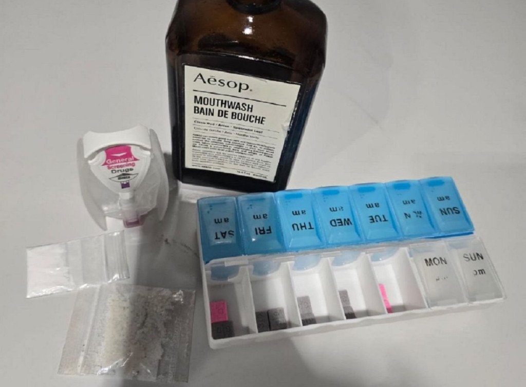 Među nađenom drogom su MDMA (3,02g), metadon (4,85g), kokain (5,99g), spid (3,02g), ketamin (5,68g), 10 tableta ekstazija i jedna bočica tečnosti za koju se sumnja da je reč o psihoaktivnoj supstanci.