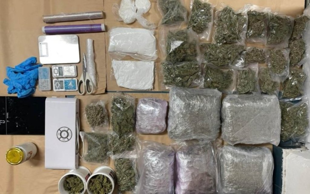 Prilikom pretresa stana, u kojem osumnjičeni neprijavljeno boravi, pronađeno je oko 6.730 grama marihuane, 2.370 grama amfetamina, 250 grama kokaina, ekstazi i stotinak elektronskih cigareta sa uljem kanabisa.