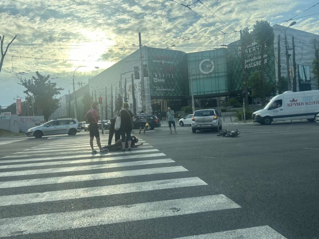 Nakon nesreće dostavljač hrane je pao na pešački prelaz gde je ostao do dolaska hitne pomoći.