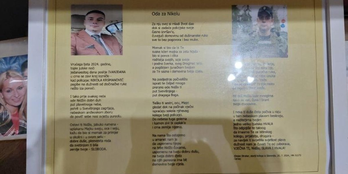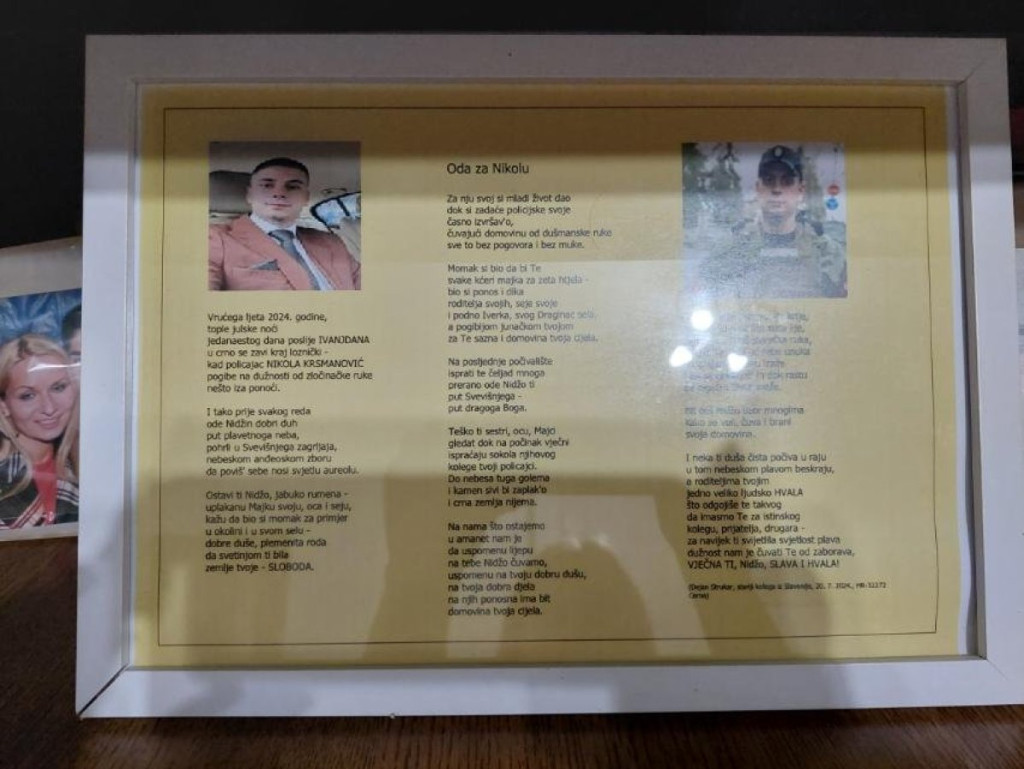 ''I dalje ne verujem šta se desilo. Kažem sebi: biću hrabra, neću plakati, ali čim izgovorim njegovo ime, krenu suze...Mnogo smo bili vezani nas dvoje,'' kroz suze priča majka mladog policajca Nikole Krmsanovića koji je ubijen na dužnosti pre tačno godinu dana.