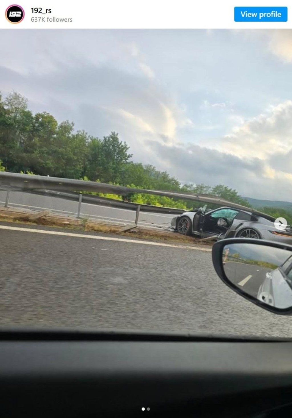 Na fotografiji koja je objavljena na pomenutoj stranici, vidi se automobil marke "porše" kako je probio zaštitnu ogradu.