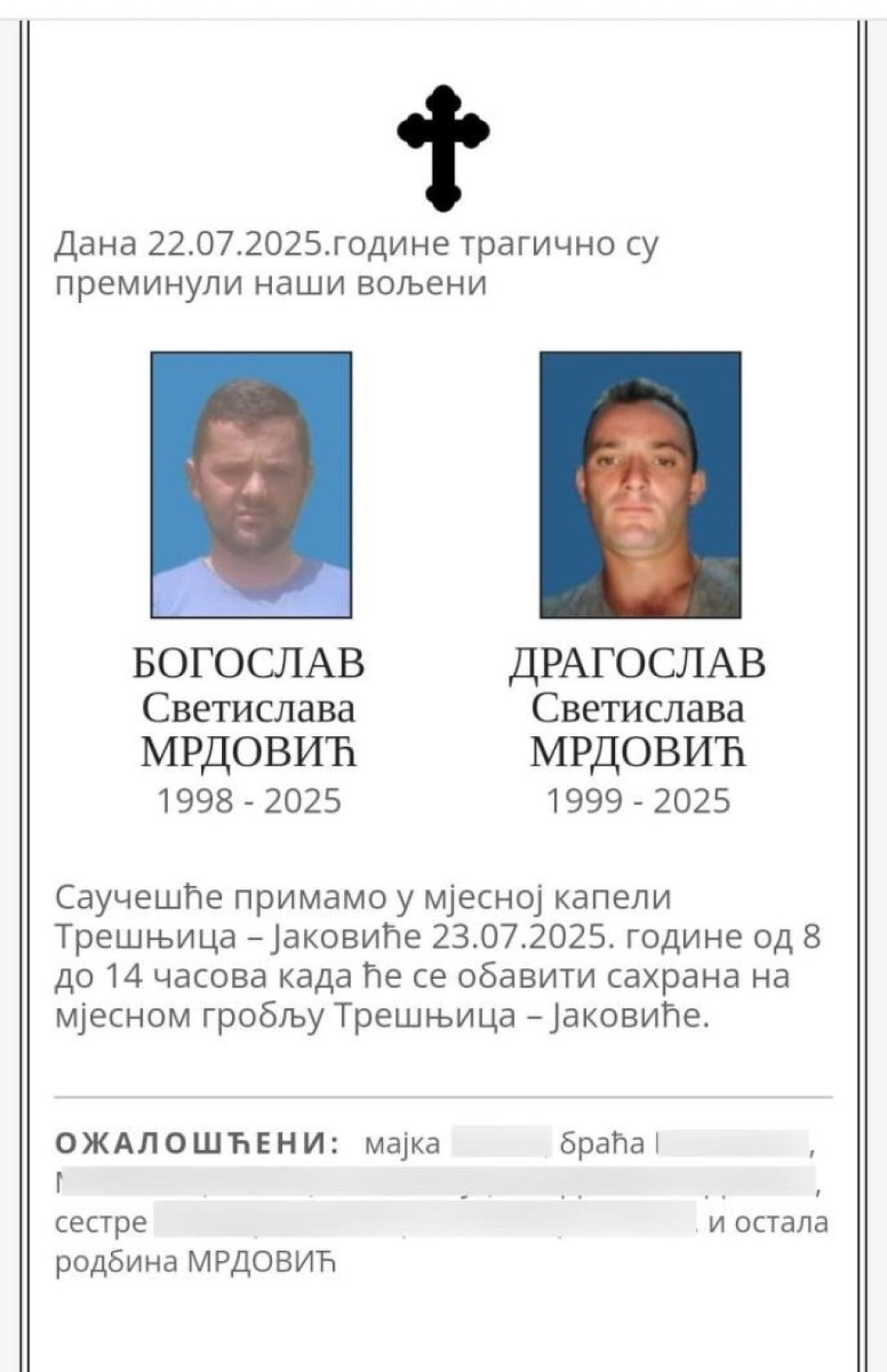 - Telo jednog brata prisutni su izvukli na obalu, dok su drugog na obalu izvukli vatrogasci. Ovo je stvarno prava tragedija za porodicu. Inače, braća potiču iz brojne, poštene i radne porodice koja živi u selu Jokovići. Bilo je ukupno 12 dece u porodici, četiri kćeri i osam sinova. Braća nastradalih su odmah došla na lice mesta, to su bili baš potresni prizori. Ogromna tuga zaista - rekao je očevidac za Rinu.