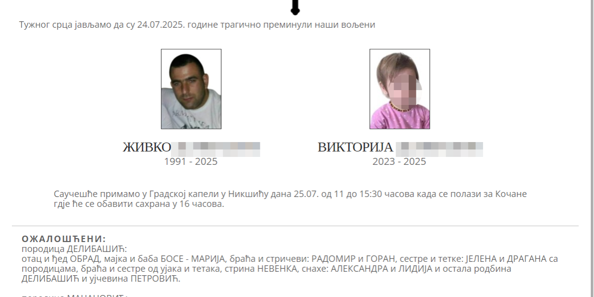 Porodica Živka D. je objavila čitulju u kojoj su navedeni svi detalji sahrane koja će biti sutra, a po svemu sudeći, Živko i Viktorija će biti sahranjeni zajedno.