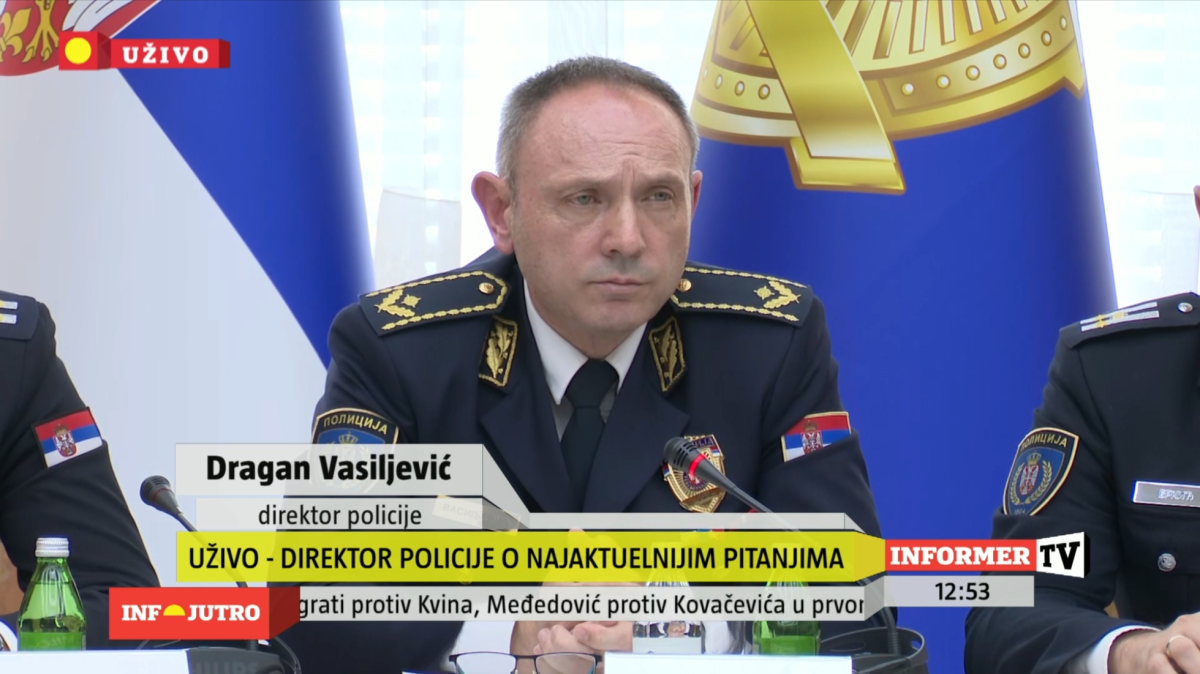 Direktor policije Dragan Vasiljević održao je vanrednu konferenciju za novinare povodom današnjih nemilih scena nasilja u Novom Pazaru.