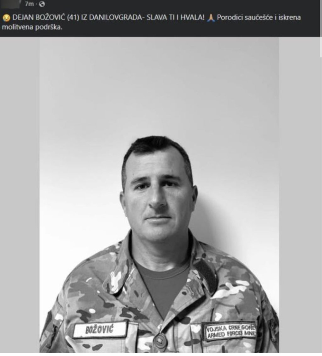 "Mlađi vodnik Božović bio je pripadnik 1. pešadijskog bataljona, oženjen i otac četvoro dece. U službi u Vojsci je bio od 2006. godine, a vršio je dužnost nišandžije na minobacaču 120mm", saopšteno je iz Ministarstva.