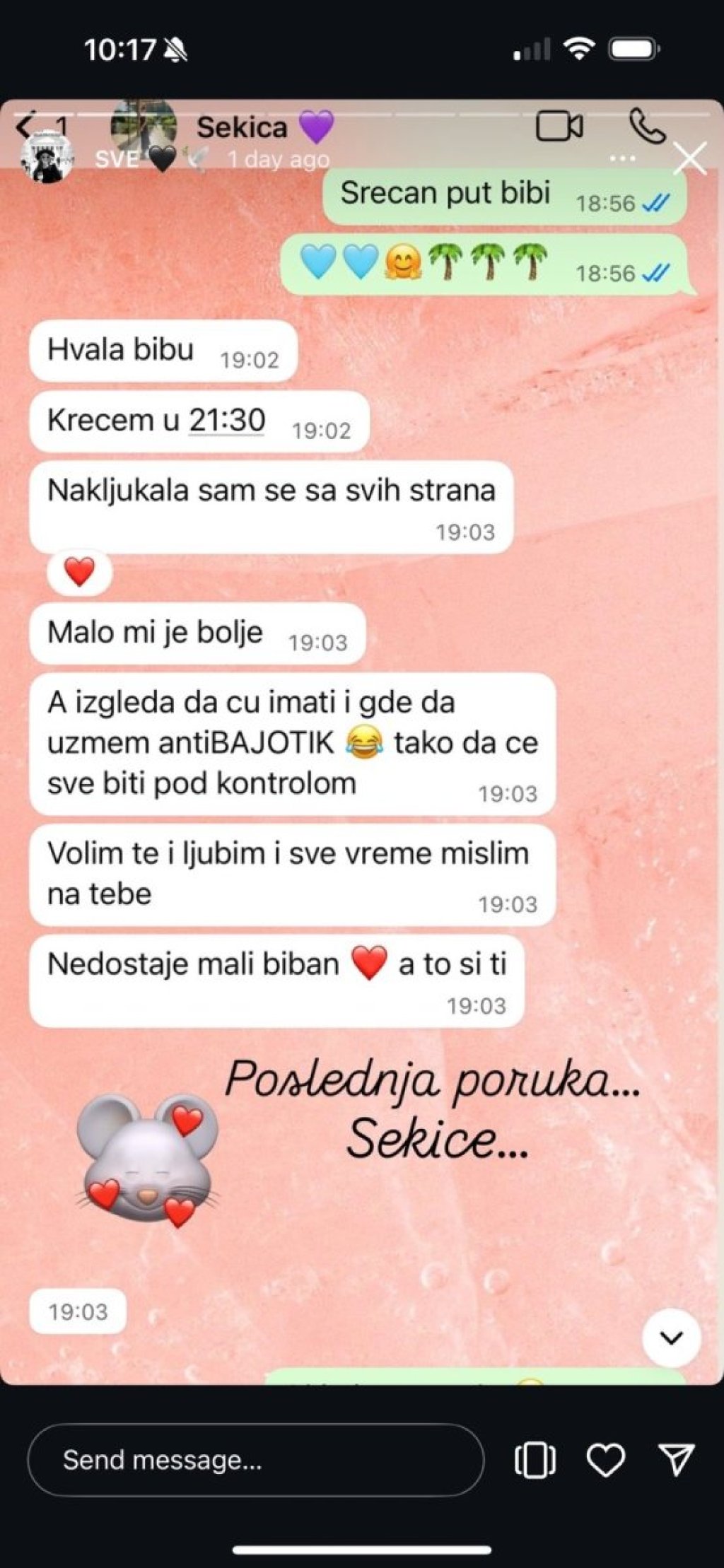 Naime, njena sestra je na svom profilu na društvenoj mreži Instagram objavila poslednje poruke sa Katarinom, koje su razmenile najverovatnije noć pred pogibiju.