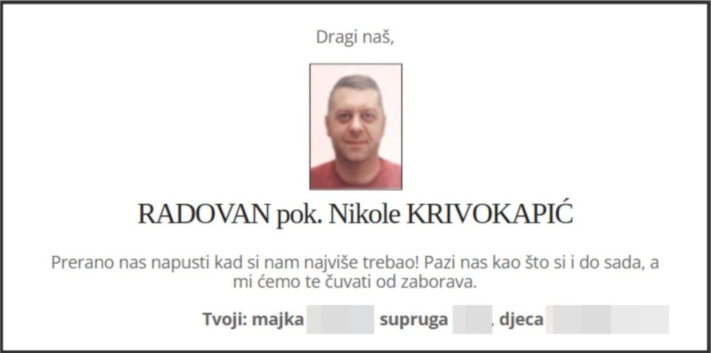 Radovan Krivokapić (44), navodni pripadnik "škaljarskog klana", ubijen je u petak uveče dok je bio na terasi porodične kuće u Kotoru, a od njega su se putem čitulje oprostili prijatelji, kao i porodica.