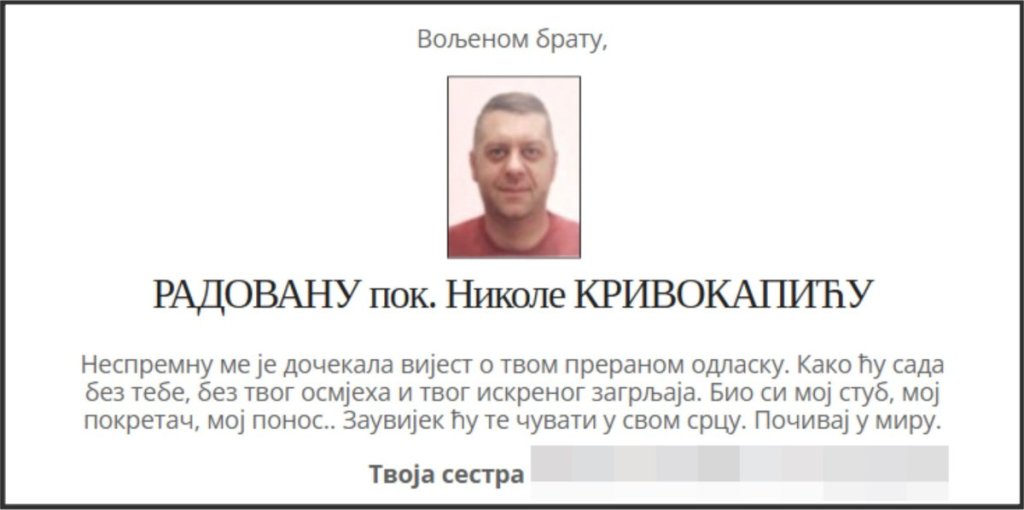 Sestra je u odvojenoj čitulji napisala srceparajuću oproštajnu poruku: