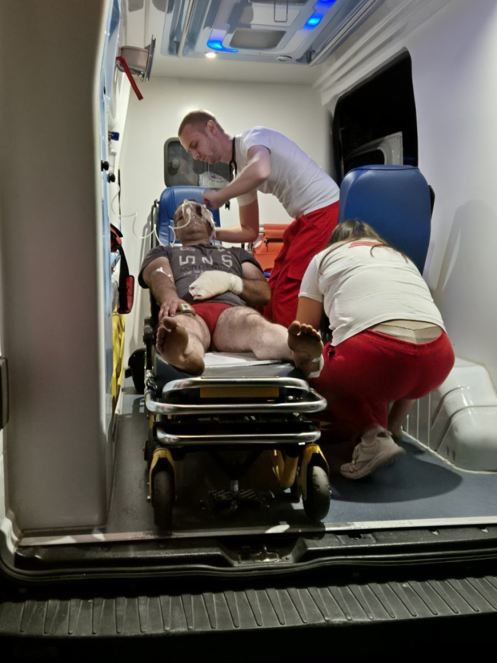 Foto: Povređeni Aleksandar u vozilu hitne pomoći/ foto: Informer