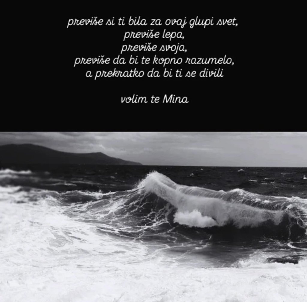 - Mina je bila veliko dete u telu odrasle, zrele žene. O svemu tome najbolje svedoči to što je na svom telu imala istetovirana imena moje i dece naše sestre Ane. A pored toga i tetovažu Petra Pana, što je i pomoglo u identifikaciji njenog tela, uz crnu boju kupaćeg kostima. Ni sama ne znam šta bih mogla da kažem, jer od pre dva dana suza suzu stiže. Roditelji ne mogu da dođu sebi od bola. Pokušajte da razumete - rekla je jedna od Mininih sestara za medije.