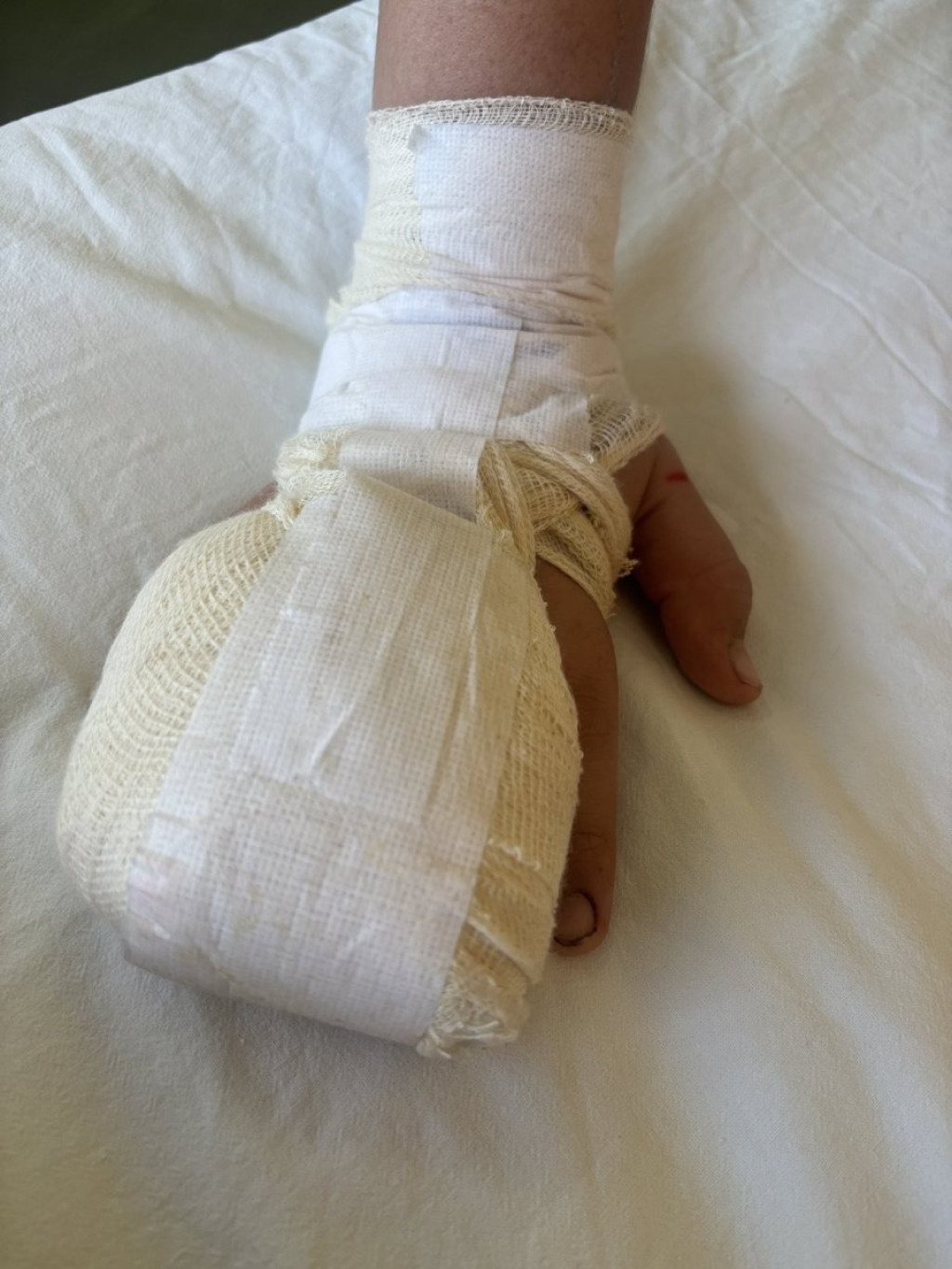 - Amputiran je vrh (zadnja falanga) četvrtog prsta i saniran prelom vrha trećeg prsta. Uz ove povrede dete ima i nagnječenje i modrice na istoj šaci od drugog do petog prsta. Lečenje još nije završeno, potrebno je još previjanja i da još nosi gips, ali je stanje deteta dobro i stabilno – kažu u UKC Niš.
