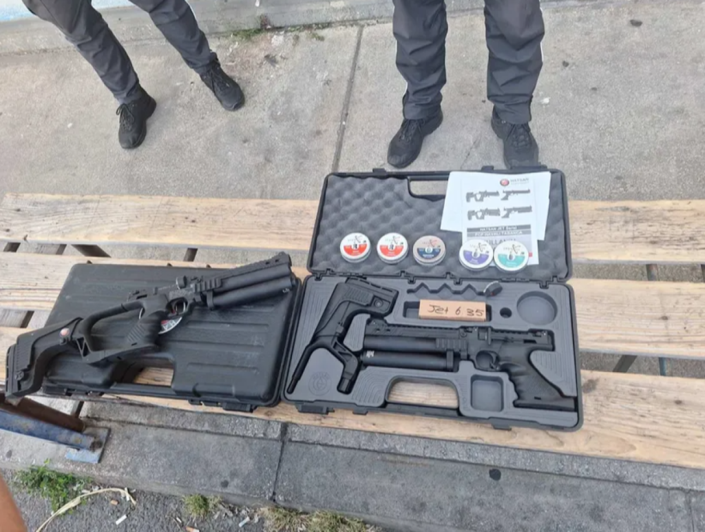 Tokom kontrole, carinici su ispod prednjih sedišta vozila uočili dve kutije u kojima su se nalazila dva gasna pištolja "Hatsan Jeet" kalibra 6,35 mm. Uz pištolje, pronađeno je i deset kutija pripadajuće municije, ukupno 1.350 metaka.