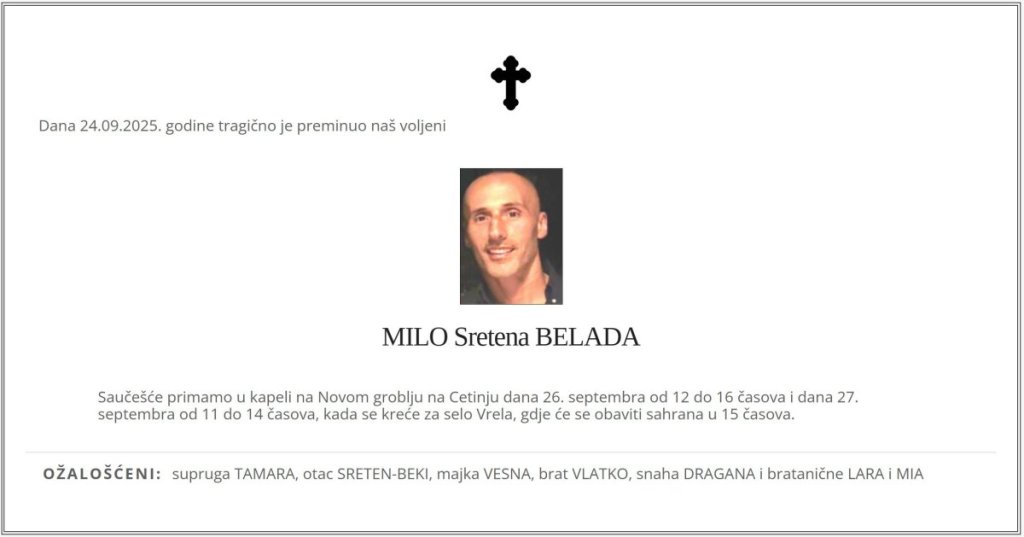 ''Na području prijestonice Cetinje, u mestu Ugnji, lišeni su života A.I. i S.B., upotrebom vatrenog oružja. Njihova tela danas oko 15.45 časova su zatečena u vozilu koje je bilo parkirano na makadamskom proširenju lokalnog puta, na oko 250 m od glavnog puta Cetinje–Budva. Policija intenzivno radi na rasvetljavanju ovog krivičnog dela. Svi raspoloživi kapaciteti Uprave policije – Sektora za borbu protiv kriminala, uz podršku Specijalne jedinice policije i Posebne jedinice policije stavljeni su na raspolaganje Regionalnom centru bezbednosti "Centar". Uspostavljena je blokada užeg i šireg lica mesta. O događaju je obavešten državni tužilac u Višem državnom tužilaštvu u Podgorici, koji rukovodi uviđajem po čijem nalogu će se preduzimati dalje policijske mere i radnje,'' naveli su u jučerašnjem saopštenju, najavljujući da će o rezultatima blagovremeno obaveštavati javnost.