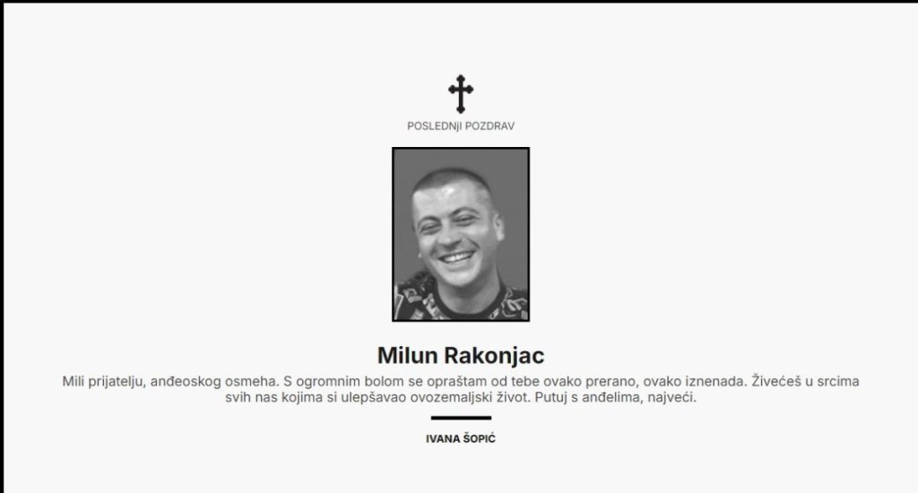 - Anđele naš najbolji i najmiliji, ljubavi majkina, snago braćina, ponosu naš najvoljeniji. Znamo da nas ti nikada ne bi ostavio i dozvolio da ostatak života provedemo u bolu i patnji. Uspomene koje si nam ostavio i ljubav kojom si nam ispunio živote, daju nam snagu da izdržimo, a ti nas čekaj na nekom lepšem i boljem mestu, gde ćemo biti ponovo zajedno, srećni kao nekada, jer je naša ljubav neraskidiva. Bio si prva radost, prva sreća, tako će ostati u našim srcima dok budu kucala - navodi se u čituljama.