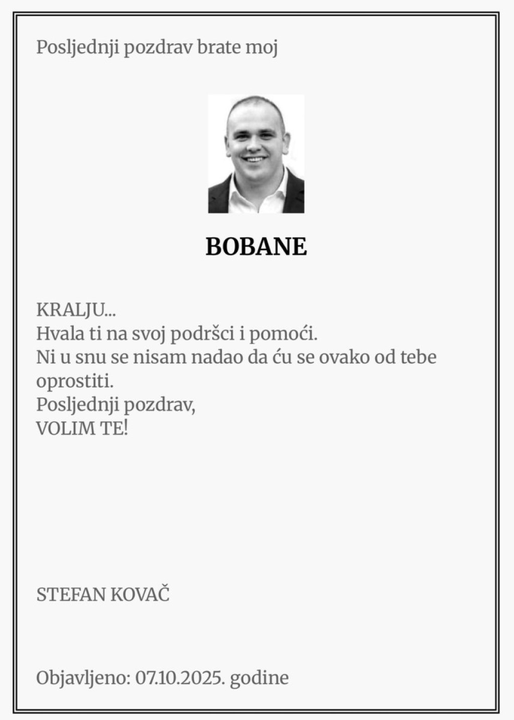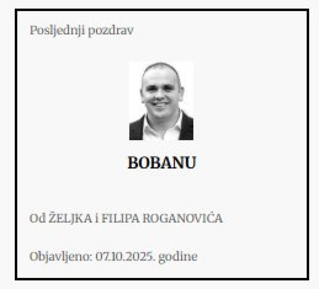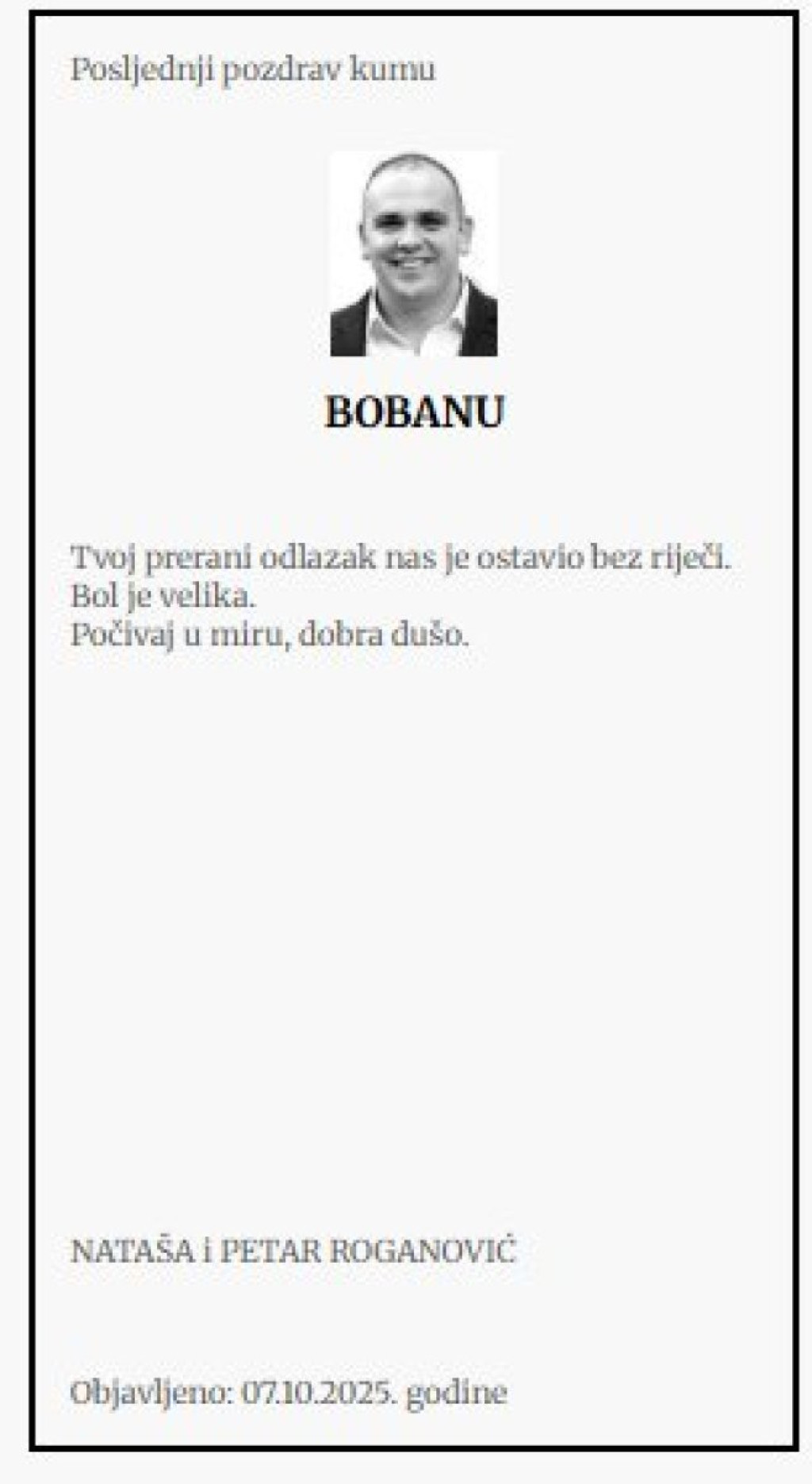 Čitulju su dali i Stefan Kovač, kao i porodica Roganović.