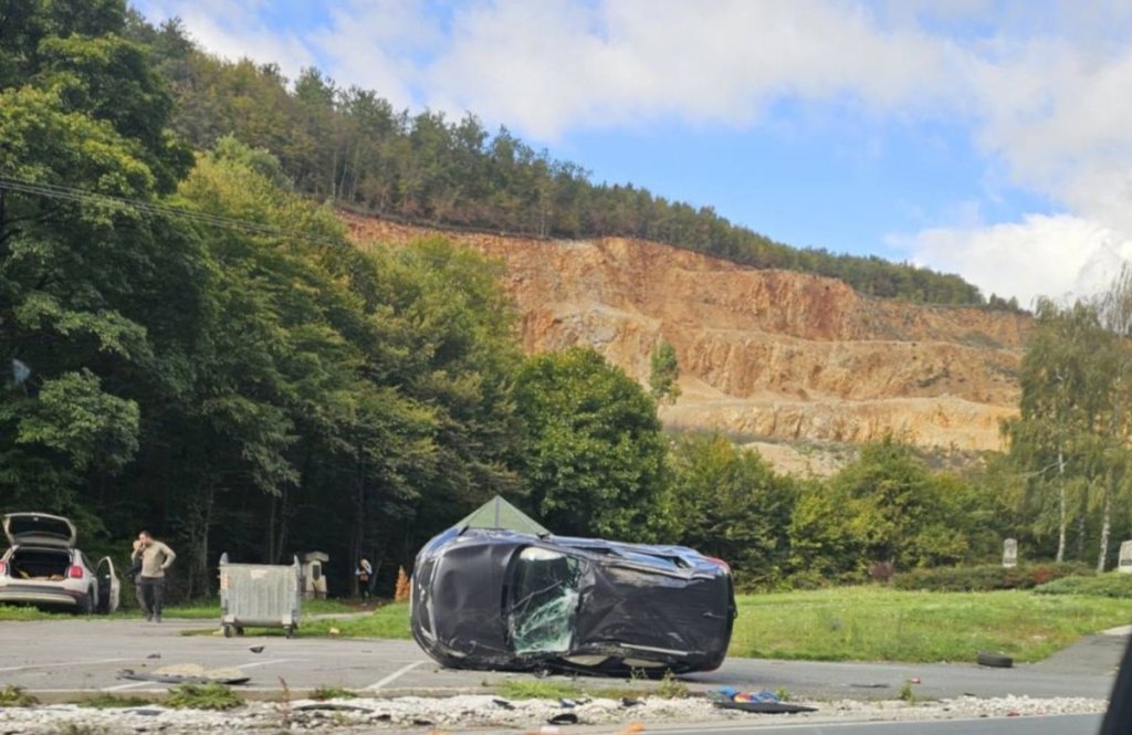 Kako saznajemo, jedan automobil od siline udara završio je okrenut na bok pored kolovoza.